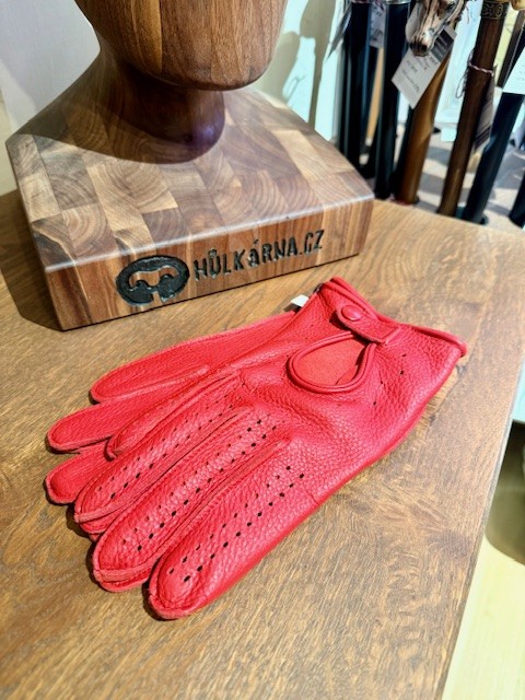 Hůlkárna Rukavice Bohemia Gloves Kožené rukavice s perforací pánské červené
