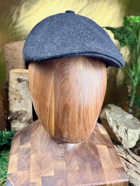 Vlněná pánská bekovka v tmavě šedé barvě. Tato v Česke republice šitá bekovka má pevný kšilt a je sešita ze šesti panelů. Vyrobený z plstěné vlny.