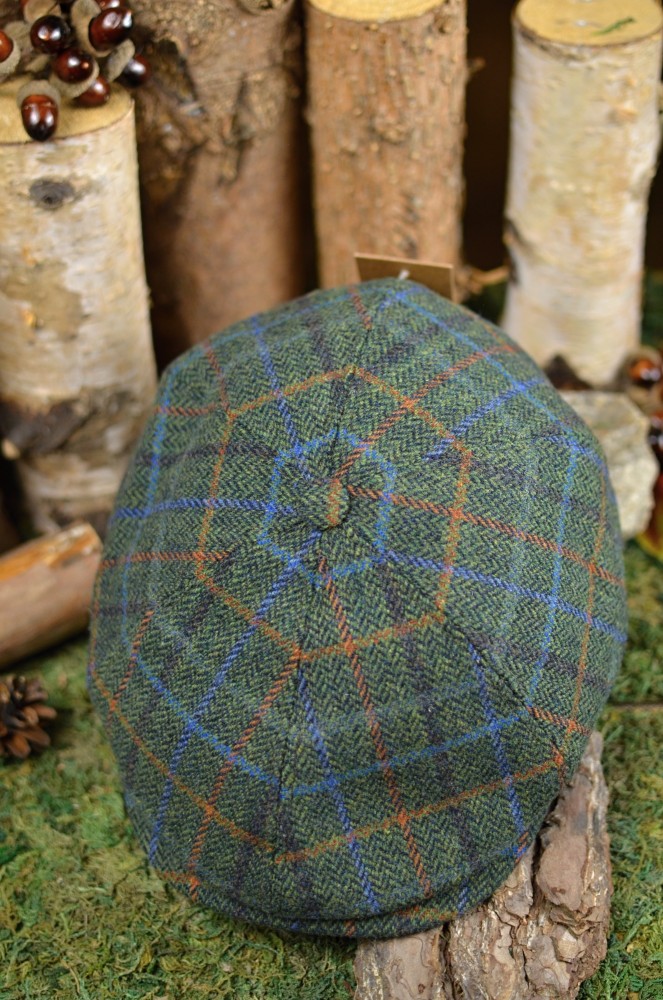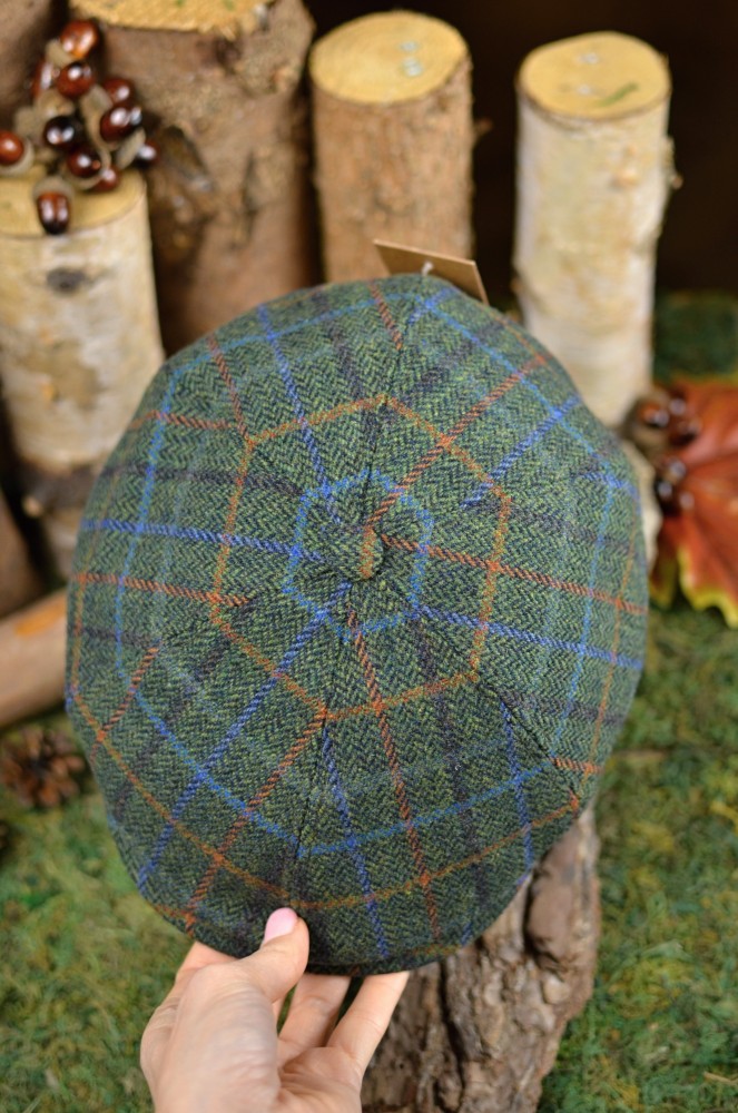Vlněná kostkovaná bekovka v zelené barvě. Je rozdělena na 6 dílků, má viditelný kšilt a nahoře cuplík. Bekokva má kvalitní prošívanou podšívku.