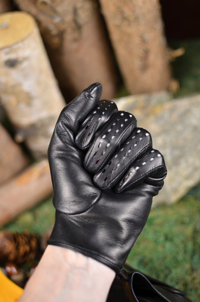 Perforované bezpodšívkové rukavice z jemné jehněčí kůže představují nejen vysoce oblíbený doplněk pro řízení automobilu, ale také elegantní ozdobu pro každodenní nošení ve městě. Jejich jemná perforace a precizně zpracované detaily dodávají celku nádech sofistikované elegance, zatímco zdobné zapínání na druk přináší nádech originálního stylu.