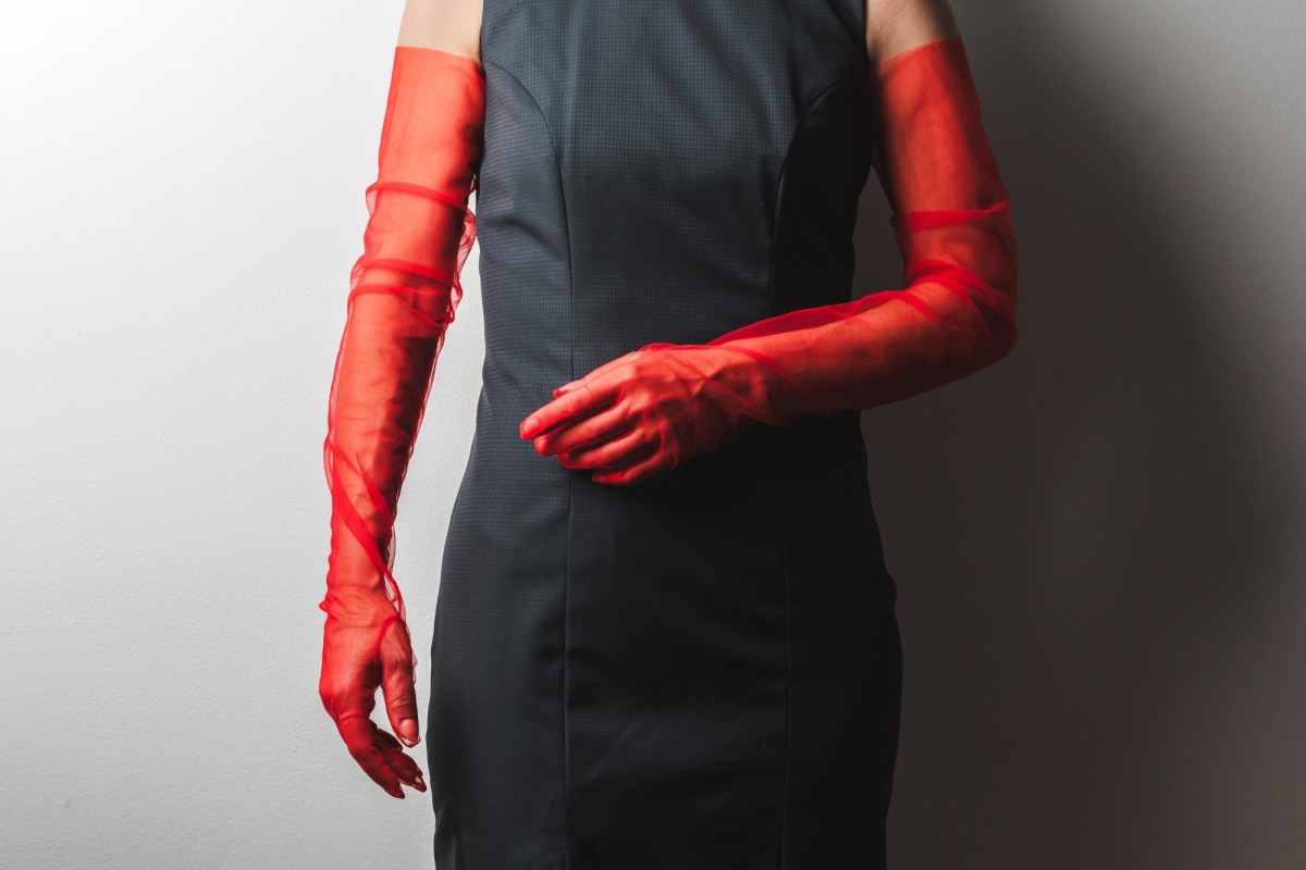 Elegantní textilní dlouhé rukavice v sytých barvách.