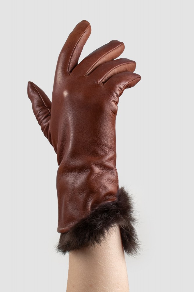Dámské zimní rukavice s lemem z králičí kožešiny