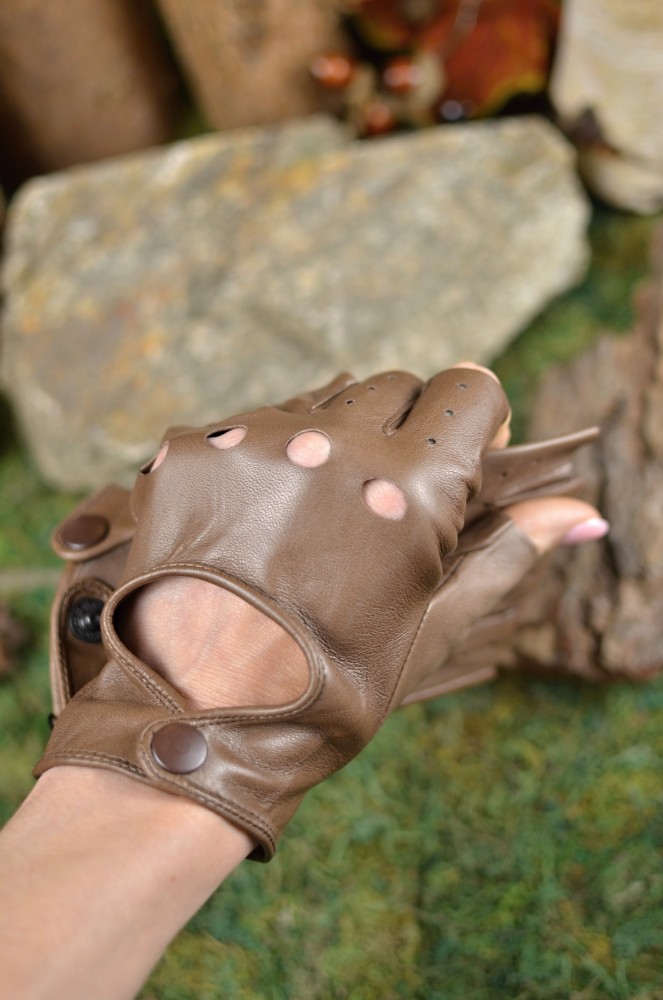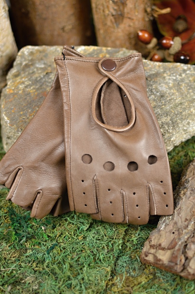 Kožené řidičské rukavice Hnědé