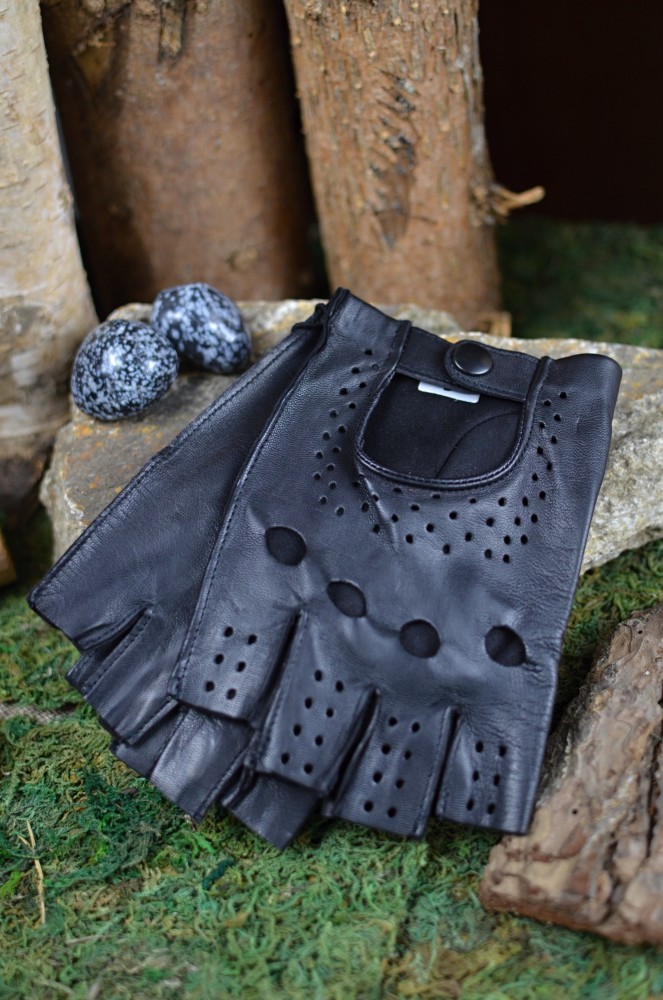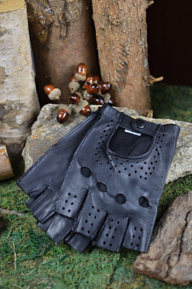 Pánské řidičské bezprsté rukavice vyrobené ručně z jemné jehněčí kůže. Rukavice mají drobné perforace na prstech, otvory pro klouby a výrazný výkroj na hřbetu zápěstí pro lepší větrání. Velmi precizní práce a použití jemné kůže se odráží na vysokém komfortu a požitku při řízení s těmito rukavicemi.