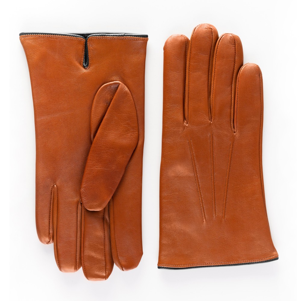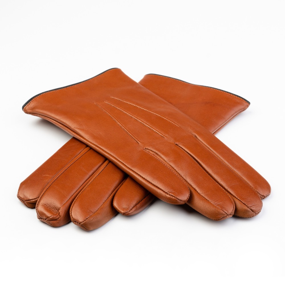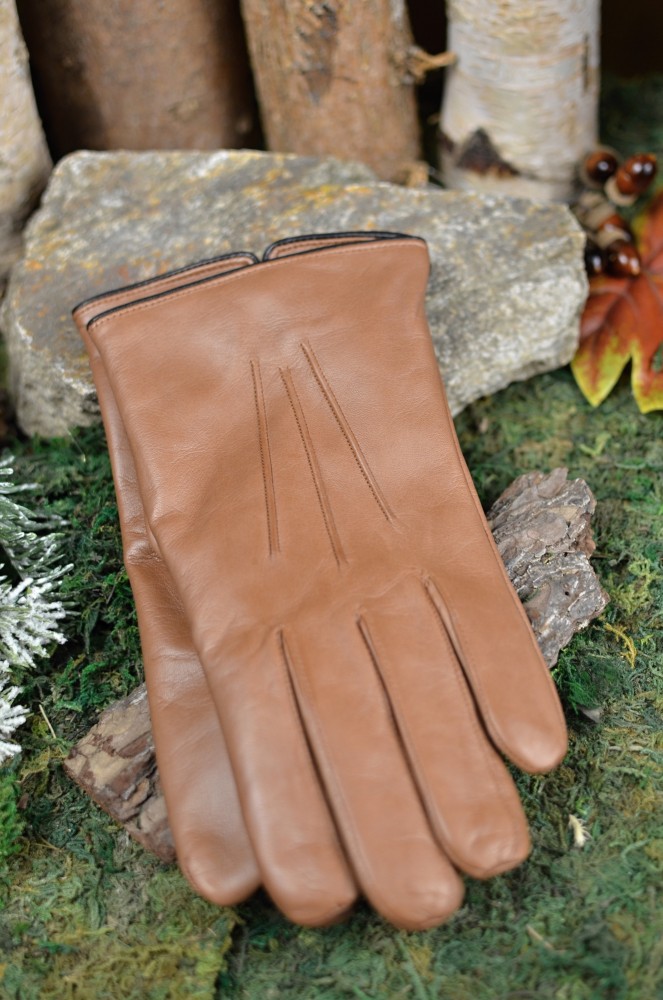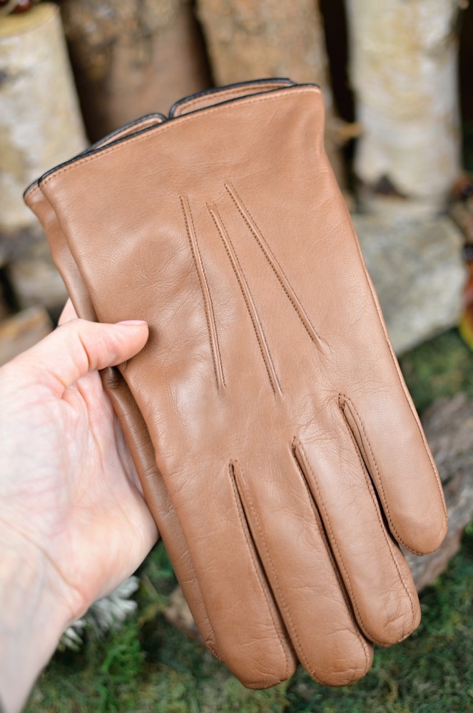 Pánské zimní kožené rukavice s vlněnou podšívkou vám zajistí skvělý tepelný komfort. Jsou velmi jemné a elegantní, v karamelové barvě.