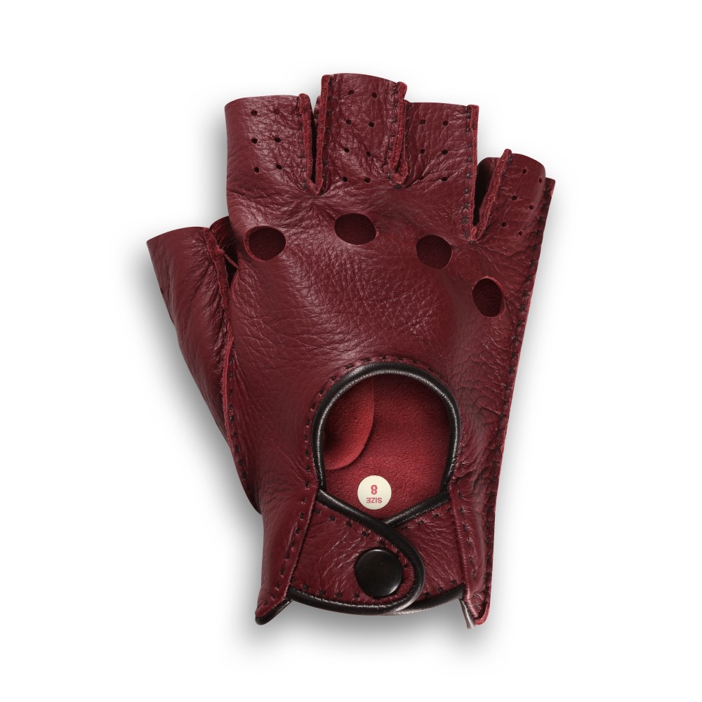 Elegantní řidičské rukavice z jemné americké jelení kůže. Bezprstý design zajišťuje skvělou citlivost a pohodlí při řízení, zatímco kvalitní materiál a ruční šití v České republice zaručují výjimečnou kvalitu a trvanlivost. Vínová nebo krémová barva s černým lemováním dodává stylový a sofistikovaný vzhled, který ocení každý, kdo hledá spojení elegance a funkčnosti.