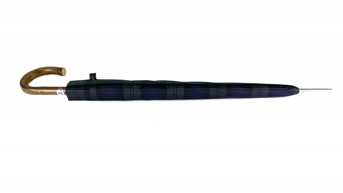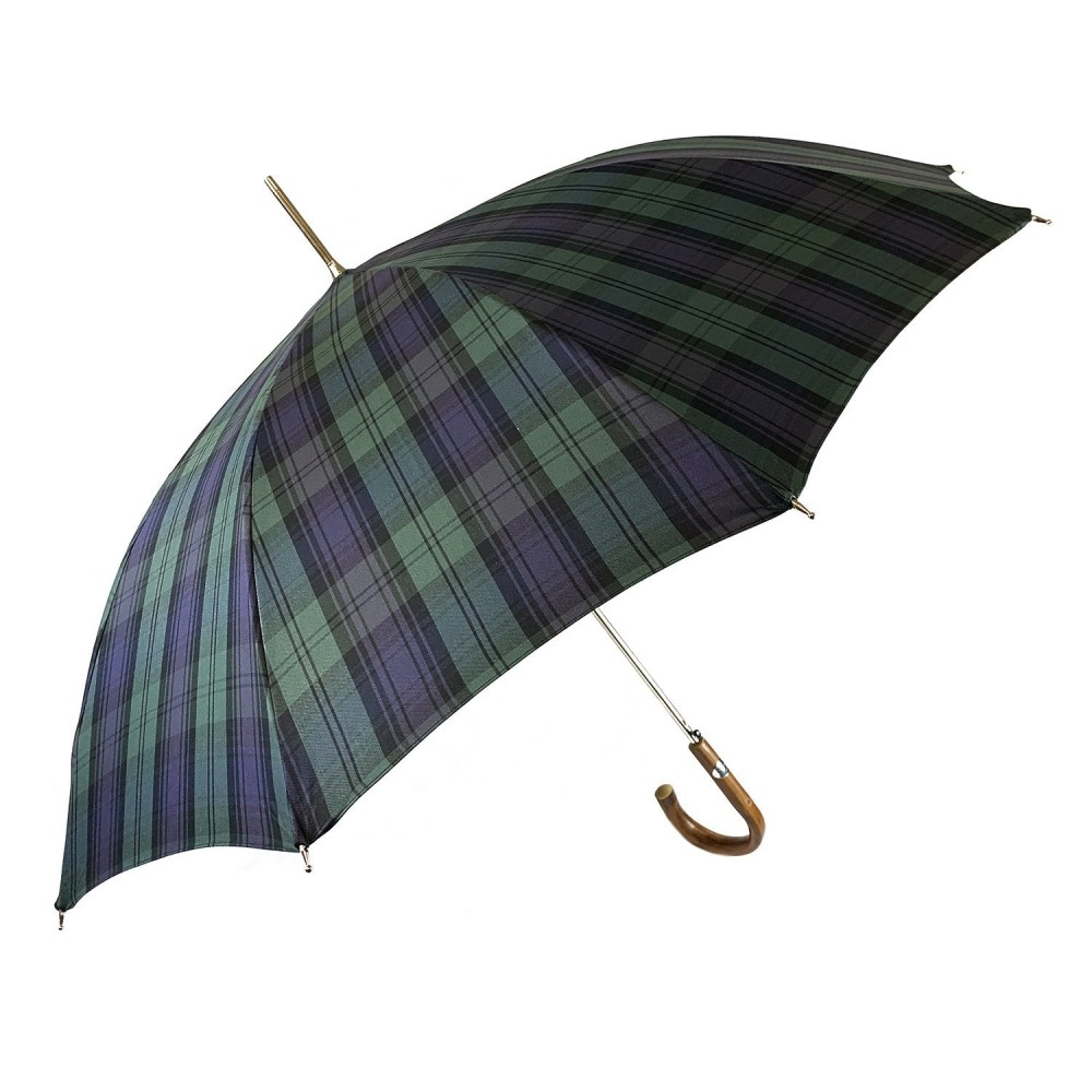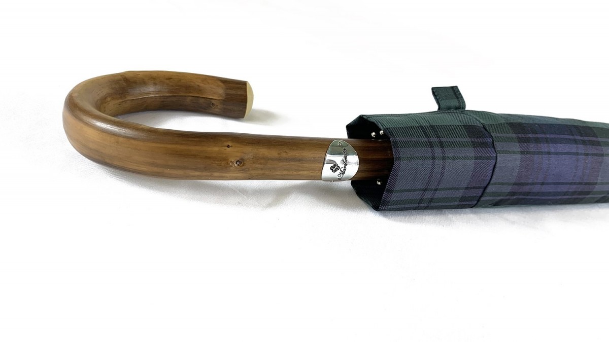 Exkluzivní pánský holový deštník v klasické anglickém stylu s Tartanovým vzorem v temně zelené a modré barvě. S krásnou rukojetí z kořene kaštanu, ručně ohýbanou, odolnou proti zlomení.