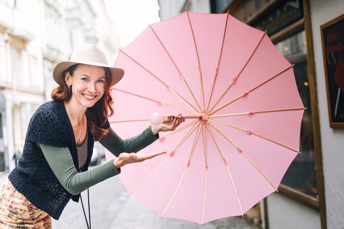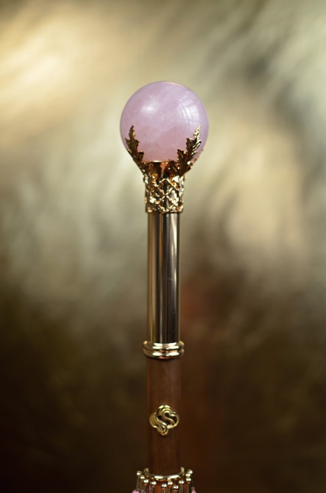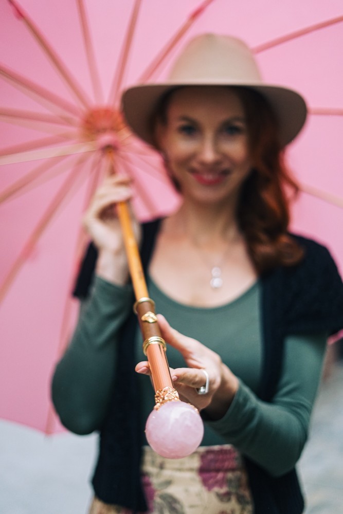 LIMITOVANÁ KOLEKCE - Luxusní, růžový deštník s pozlacenou rukojetí a skvostným růženínem (narůžovělá odrůda křemene známá jako kámen lásky a harmonie).