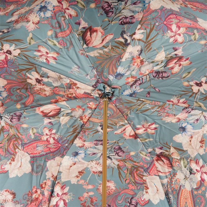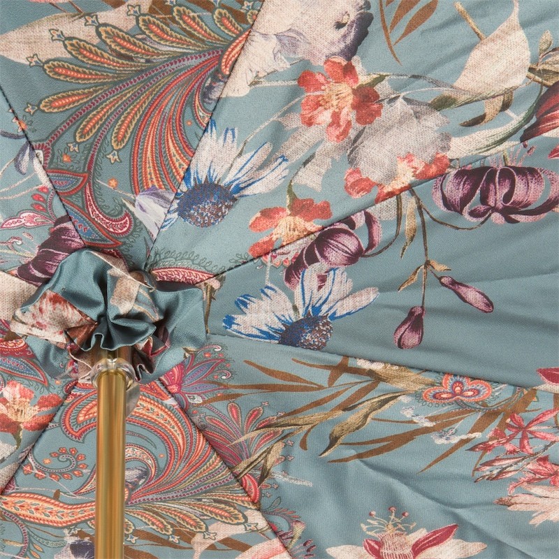 Další překvapení Vás čeká po rozevření deštníku. Vnitřní plášť má v sobě zakomponované japonské květy na modro-šedém podkladu.Celý deštník je s citlivostí navržen a tvoří tak dokonalý kompaktní celek. Rukojeť deštníku už je jenom pověstnou třešničkou na dortu, je kožená taktéž v burgundy barvě.