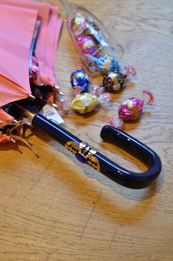 Něžný a zárověň velmi úchvatný deštník s dvojím pláštěm a propracovanými detaily. Vnější plášť deštníku je v překrásné růžové barvě a ve vnitřní části deštníku je nádherný, pestrý design květin (některé květy podobné Ibišku), v odstínech růžové barvy na tmavě modrém podkladu.