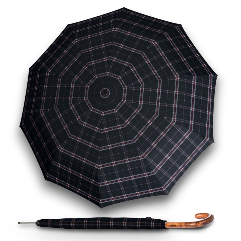 Unikátní pánský deštník s dřevěnou rukojetí, která je pečlivě a elegantně zpracovaná. Součástí balení je stylový obal pro snadné skladování a přenos. Design zdobí bílo-červená kostka na tmavém poli, což dodává deštníku moderní a výrazný vzhled. Ideální volba pro muže, kteří ocení kvalitu, styl a originální vzhled.