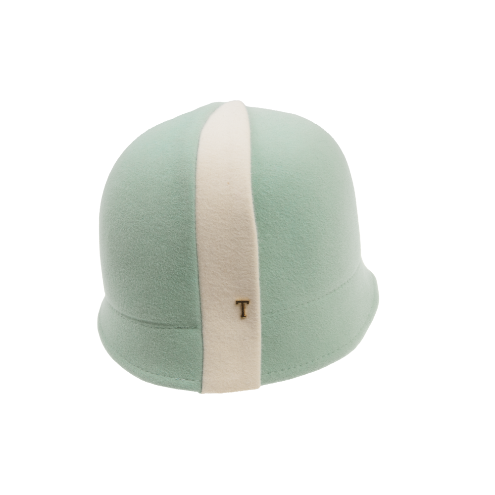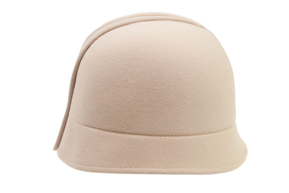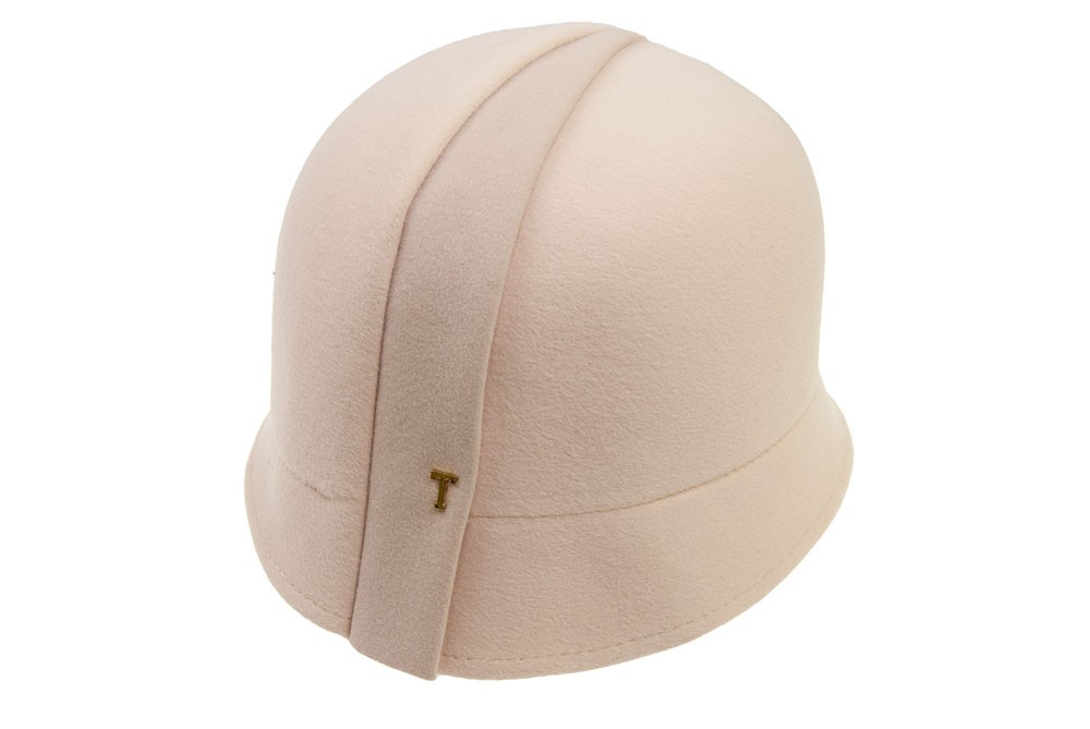 Dámský plstěný klobouk v retro kulatém tvaru. Má krásnou jemně krémovou barvu a krátkou krempu.