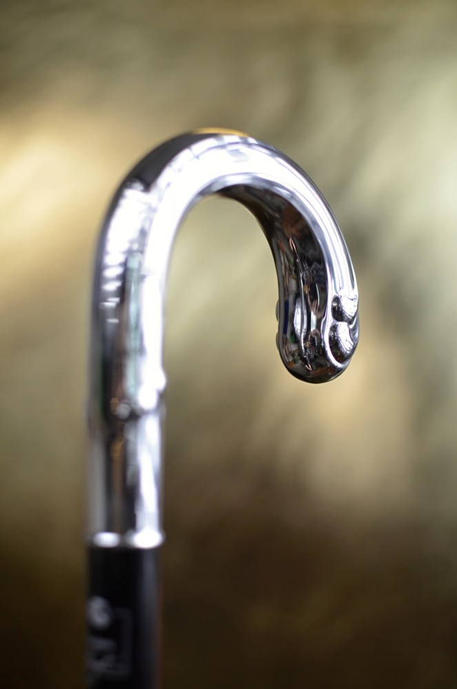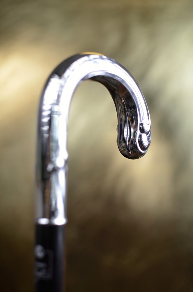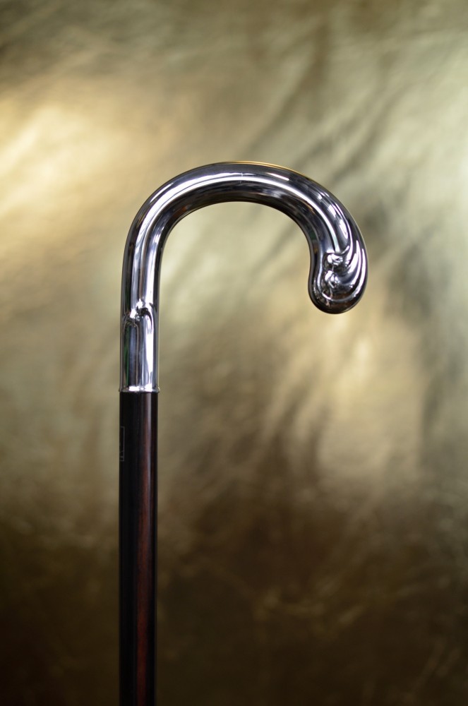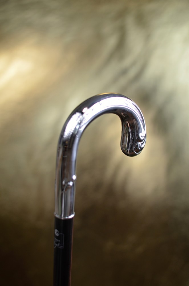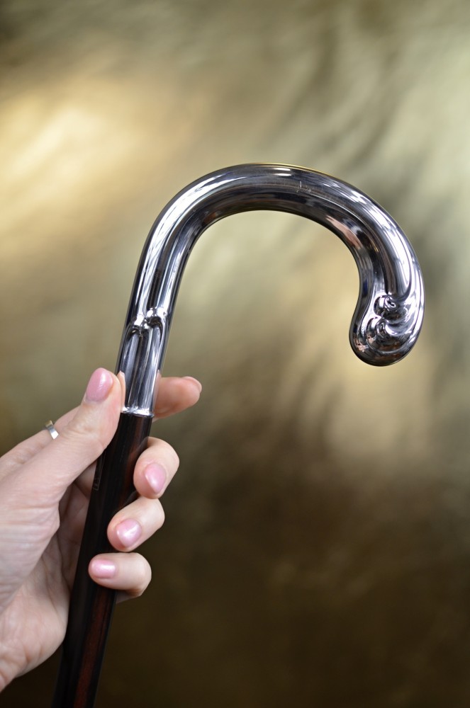 Krásná luxusní vycházková hůl s postříbřenou jemně zdobenou kulatou rukojetí.