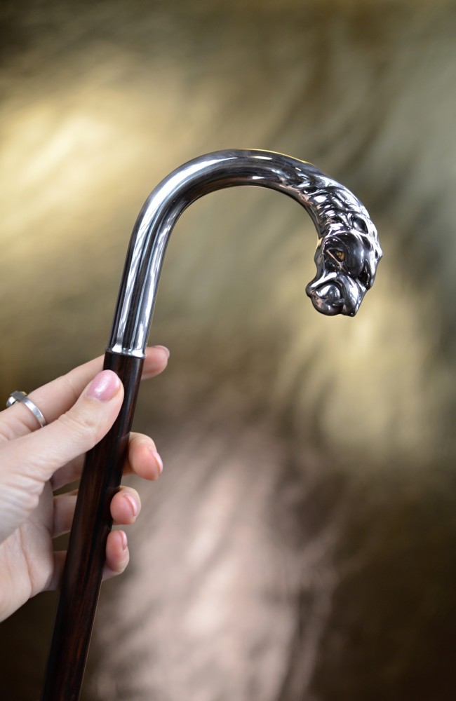 Vycházková hůl luxusní s postříbřenou rukojetí kulatou ve tvaru lva. Hůl je lehká a pevná, má fixní délku. Hůl je výjimečnou umělecko-řemeslnou prací. Jde o velmi krásnou elegantní hůl s jedinečným designem - tip pro znalce. Hůl je vyrobena ve Francii v manufaktuře, kde se vyrábí hole, které se objevily např. v seriálu Dr. House, jiné používají třeba J.P. Belmondo nebo A. Delon.