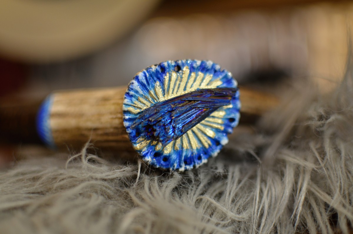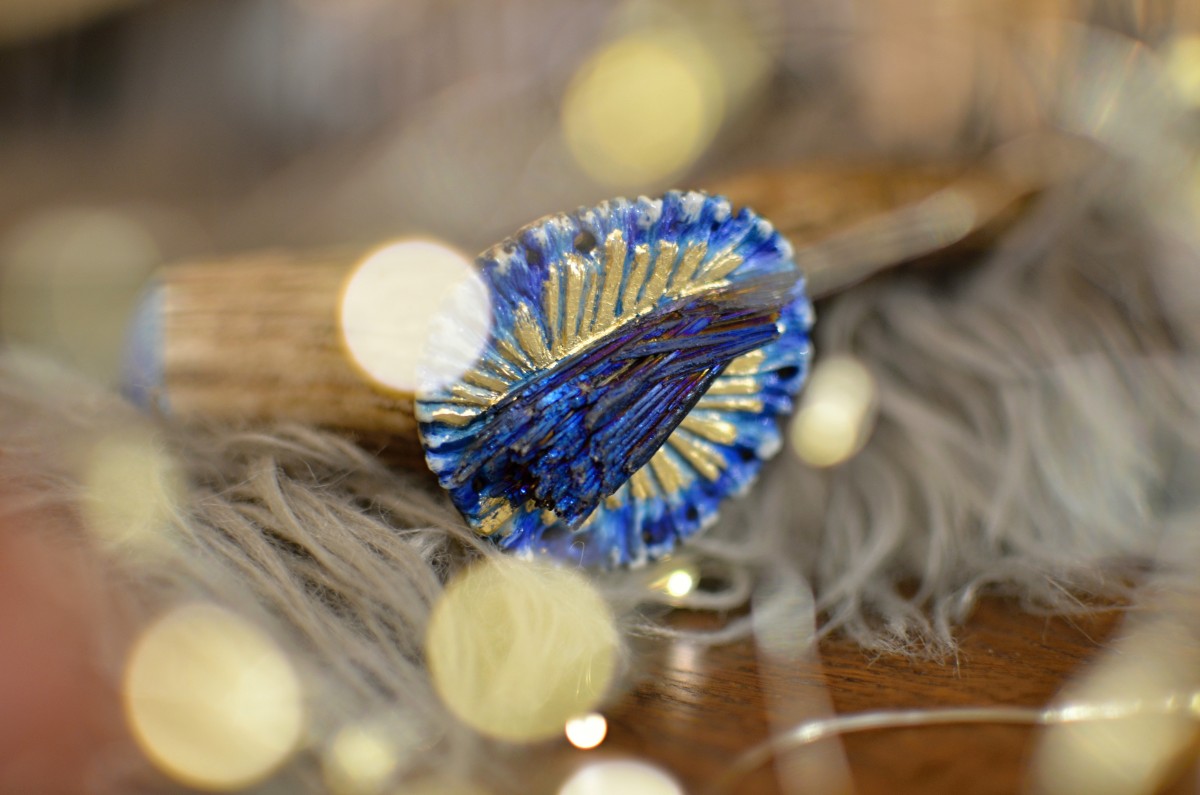 Byl použit Turmalín, pravé zlato a modrá barva...precizní práce a krásný sběratelský kousek.