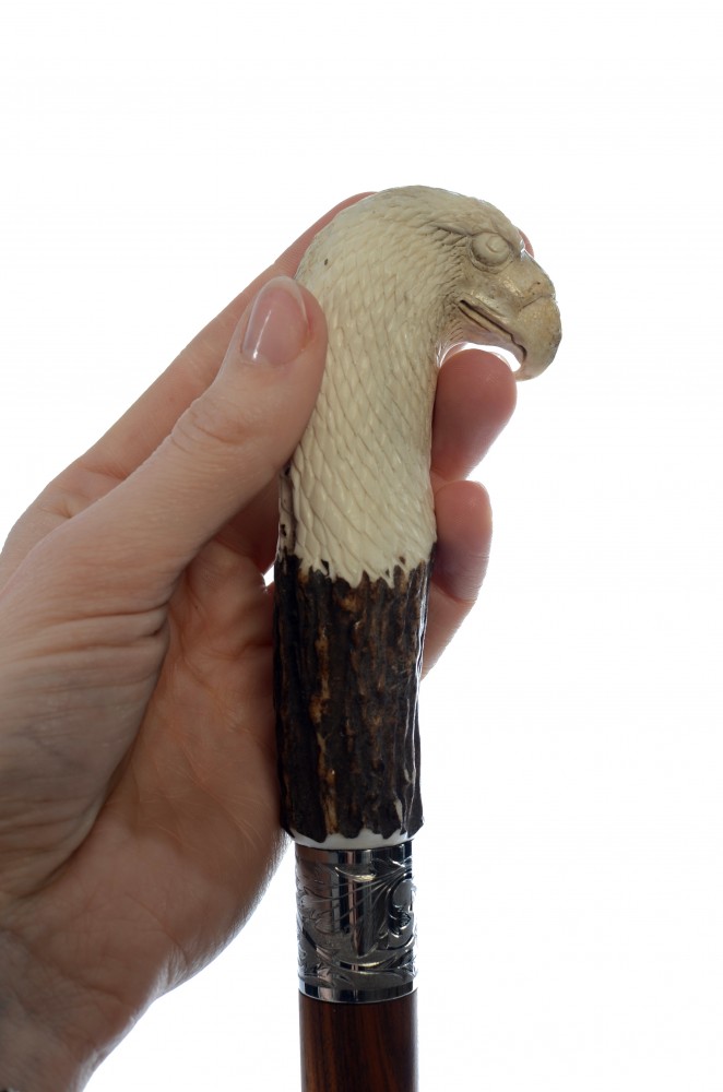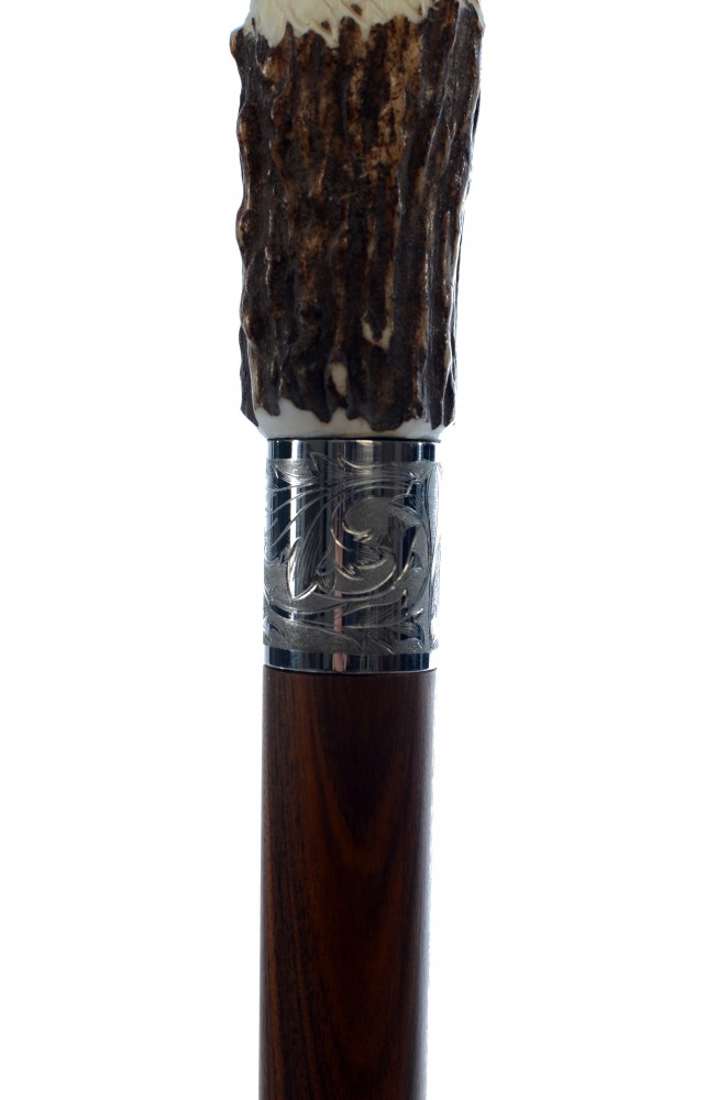 Rukojeť je ručně vyřezávaná z paroží. Pod rukojetí je nerezový kroužek s ozdobnou rytinou a dlouhá ocelová čepel Maraging, která je skryta v útrobách vycházkové hole. Tělo vycházkové hole je z palisandru a koncovka je elegantně uzoučká.