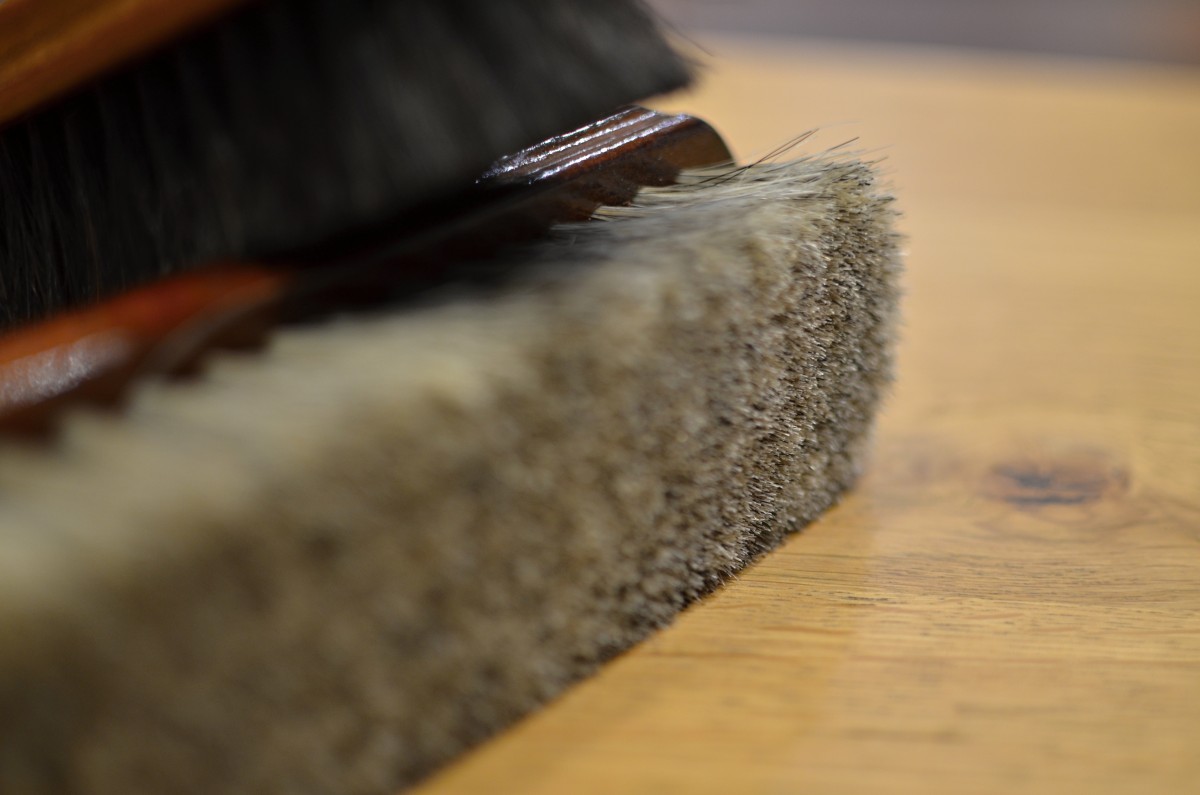 Dřevěný luxusní kartáč s přírodními žíněmi je nezbytným doplňkem k vašemu klobouku.
