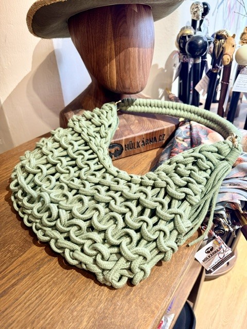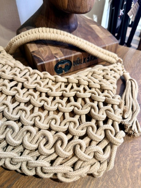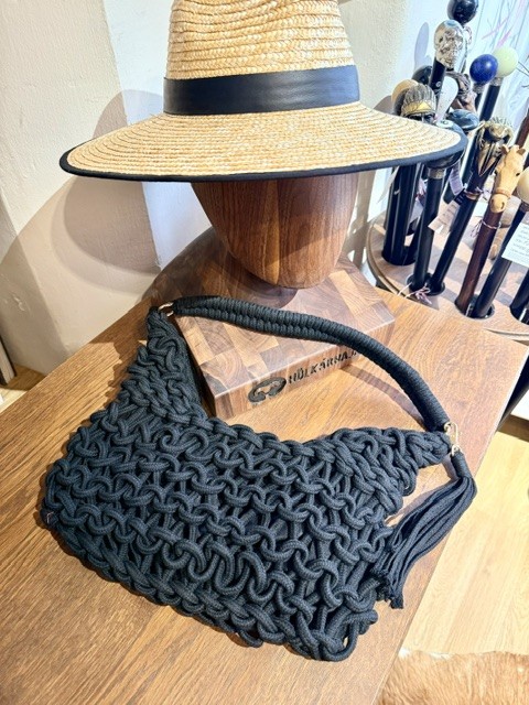 Dámská stylová pletená kabelka, ideální k letnímu kloboučku.
