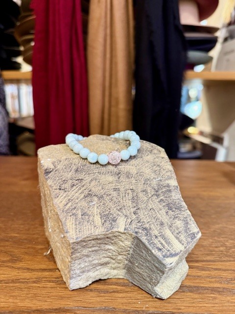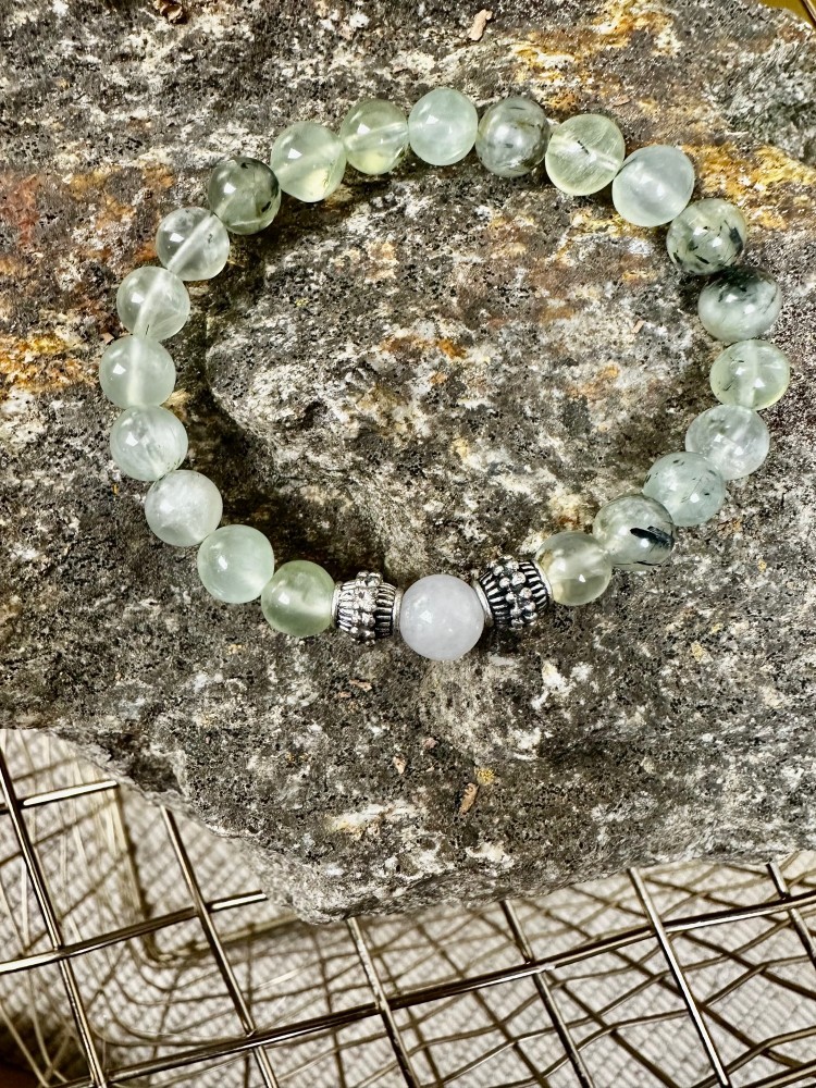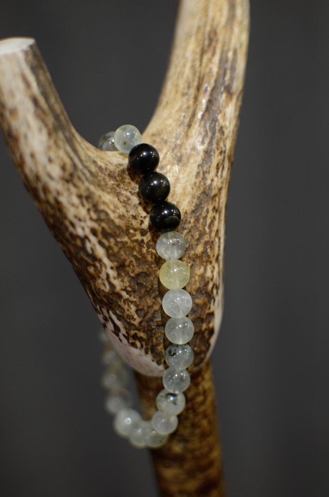 Náramek z kamenů jako je chalcedon, turmalín, růženín v jemných, přírodních barvách.