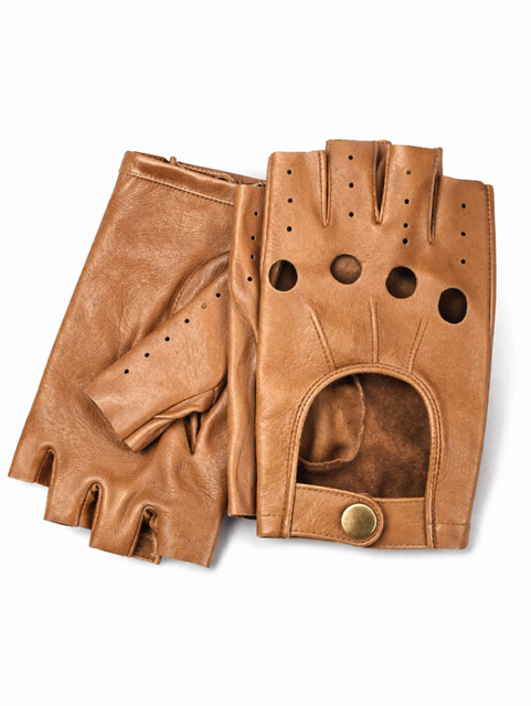 Tyto bezprstové kožené rukavice patří mezi nejoblíbenější modely v kategorii řidičských rukavic. Středně hnědá jehnětina z neapolské koželužny je mimořádně jemná a příjemná – na ruce působí jako druhá kůže.