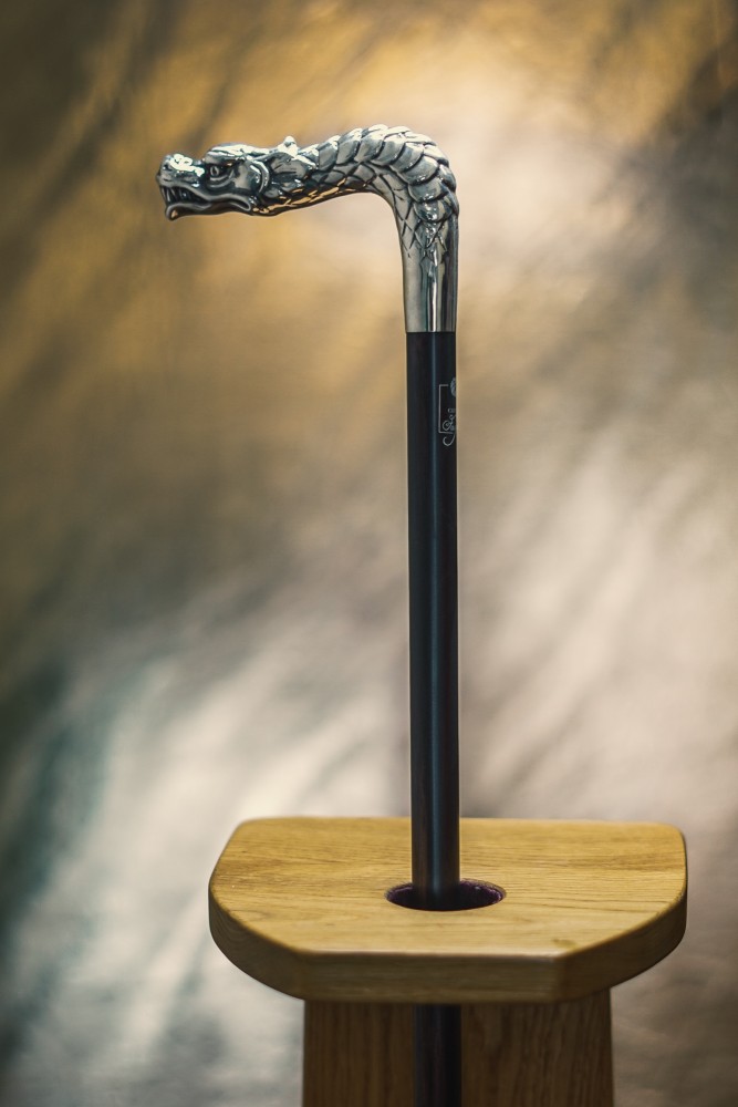 Vycházková hůl luxusní kompozitní s postříbřenou rukojetí ve tvaru draka. Hůl je lehká a pevná, má fixní délku. Hůl je výjimečnou umělecko-řemeslnou prací. Jde o velmi krásnou elegantní hůl s jedinečným designem - tip pro znalce. Hůl je vyrobena ve Francii v manufaktuře, kde se vyrábí hole, které se objevily např. v seriálu Dr. House, jiné používají třeba J.P. Belmondo nebo A. Delon.