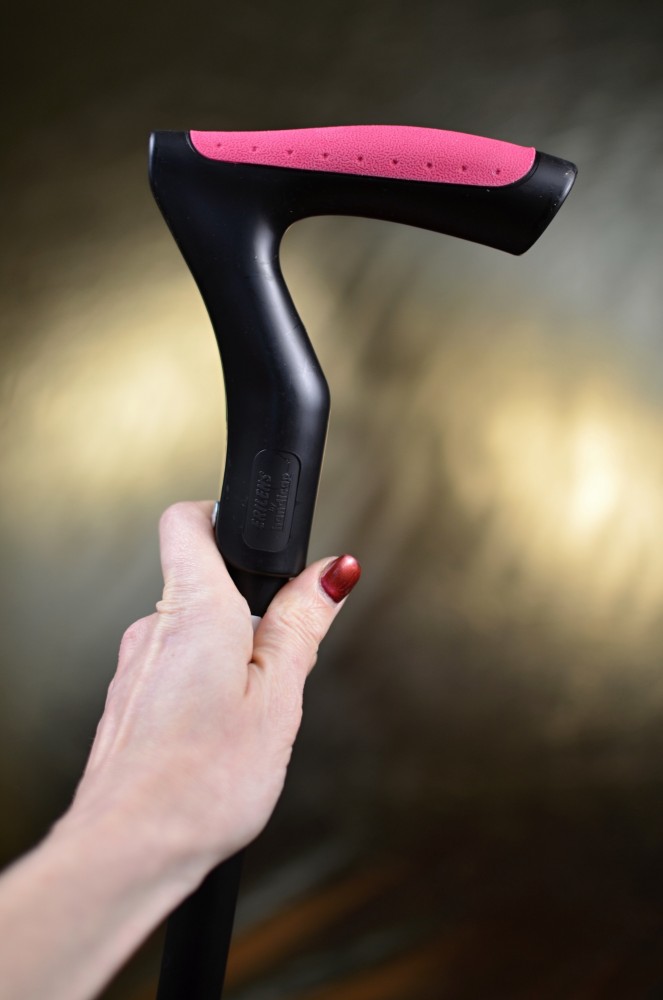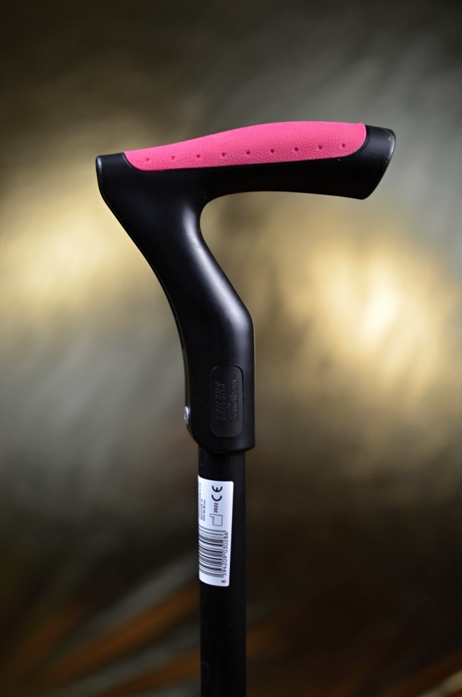 Vycházková hůl ve sportovním designu s nastavitelnou délkou a měkčenou rukojetí. Tato hůl má zvýšenou nosnost do 130 kg a rukojeť pouze v růžovo-černém provedení (viz.foto).