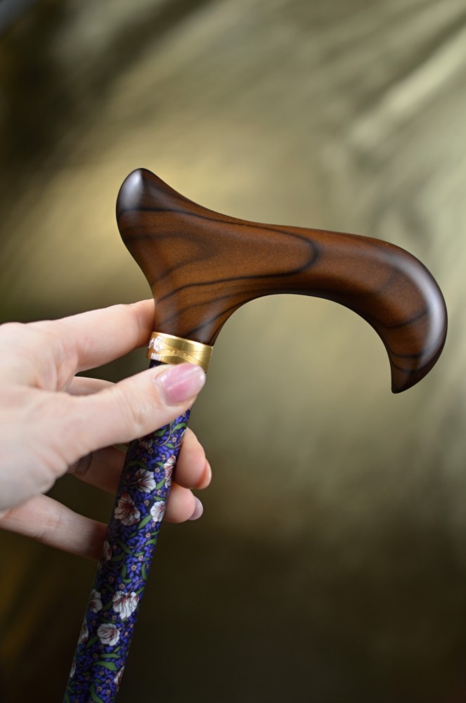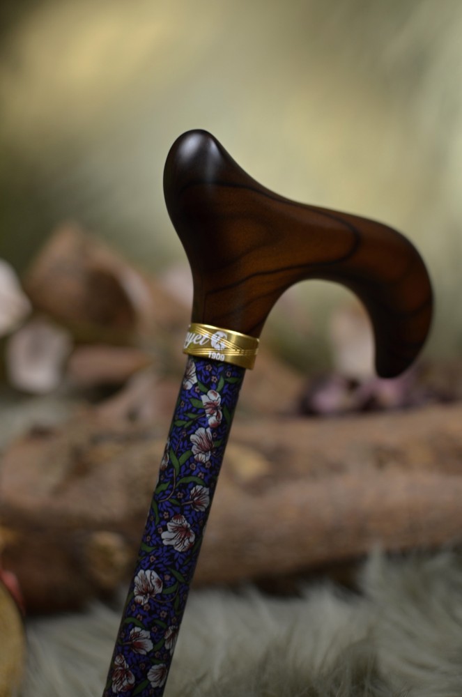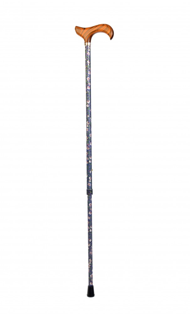 Vycházková hůl značky Fayet s nastavitelnou délkou s rukojetí derby. Hůl je lehká a velmi pevná, nastavení délky hole funguje na jednoduchém šroubovacím mechanismu, hůl je tímto mechanismem bezpečně držena na správné délce. Hůlka má krásný romantický květinkový vzor.