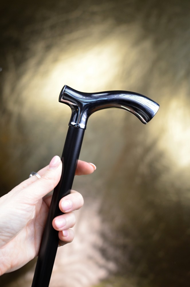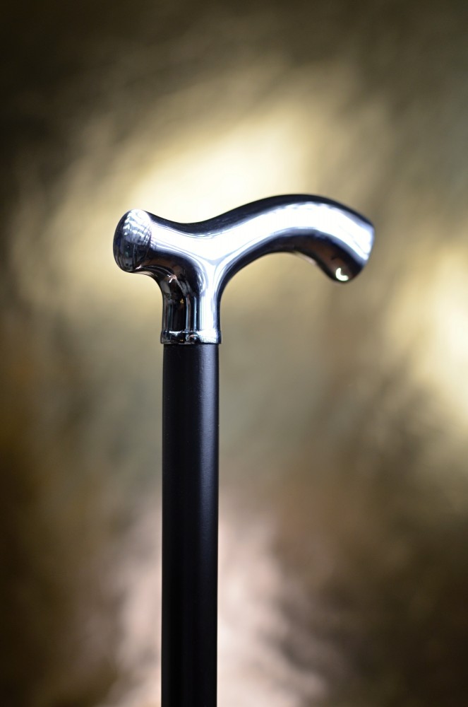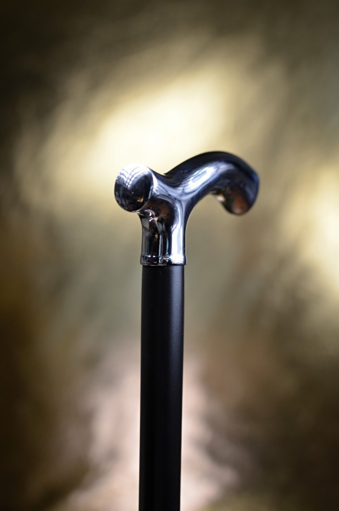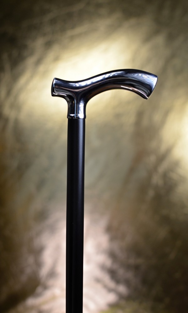 Vycházková hůl s rovnou rukojetí. Hůl je lehká a pevná, pochromovaná rukojeť působí efektivně.