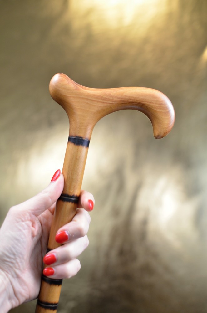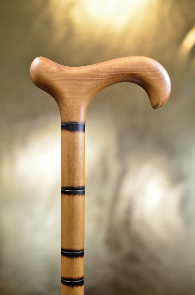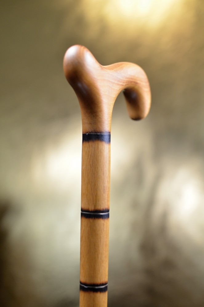 Dřevěná vycházková hůl v imitaci bambusu. Je lehká a pevná, vyrobena z bukového dřeva, s jednoduchým designem černých prstenců.