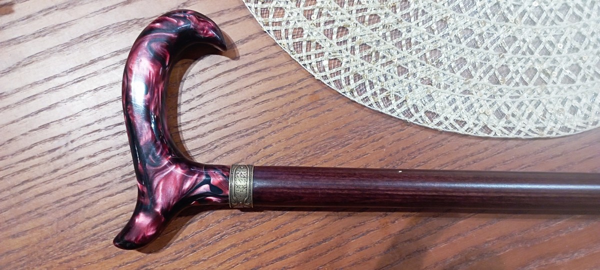 Elegantní vycházková hůl.Dřevěná s lesklou, vínovo-černou rukojetí s mramorovým vzorem. Tuto hůl je možné za poplatek upravit na zakázku a to zkrácením.