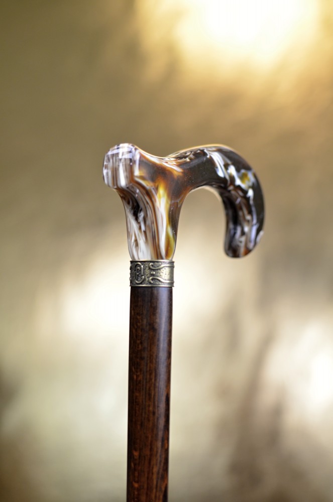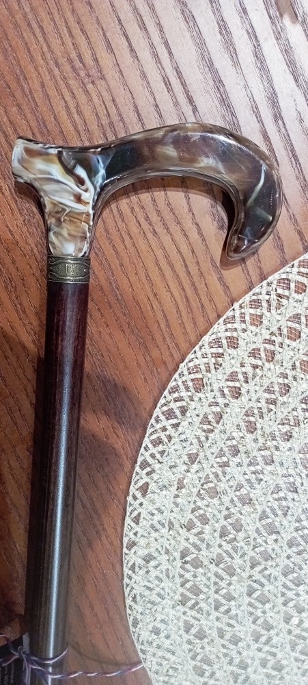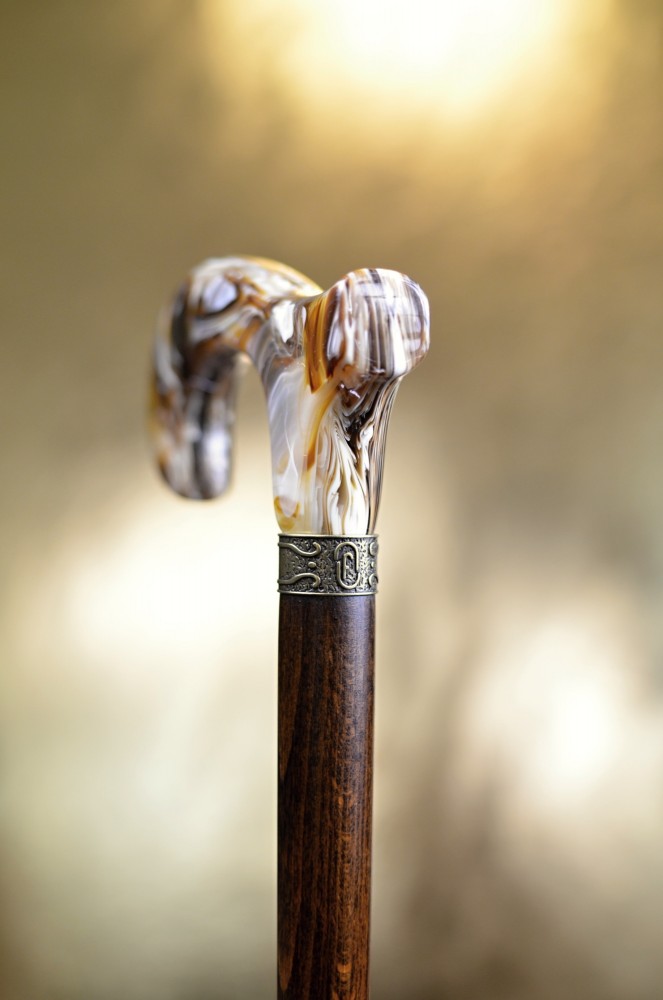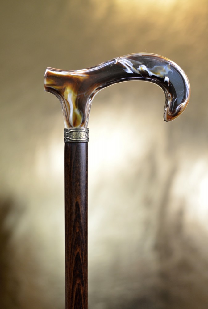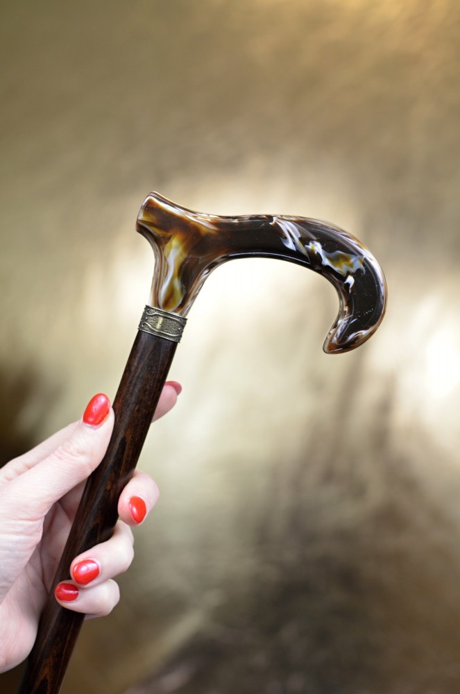 Na první pohled zaujme lesklou rukojetí v hnědé žíhané barvě s mramorovým efektem, která dodává holi osobitý a noblesní vzhled.