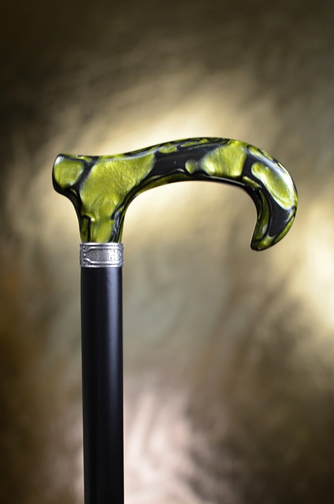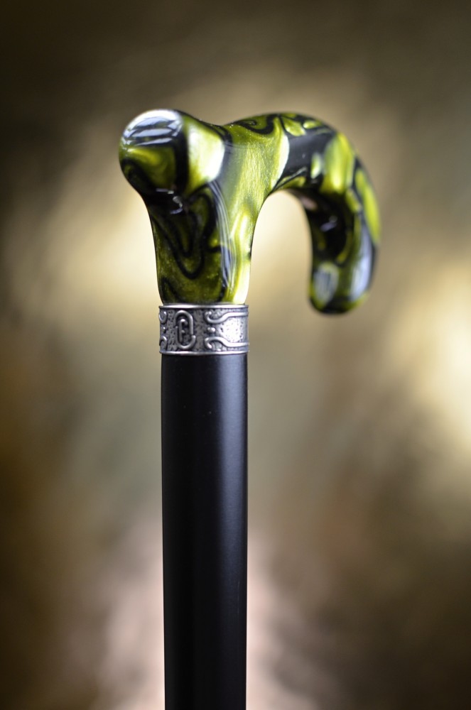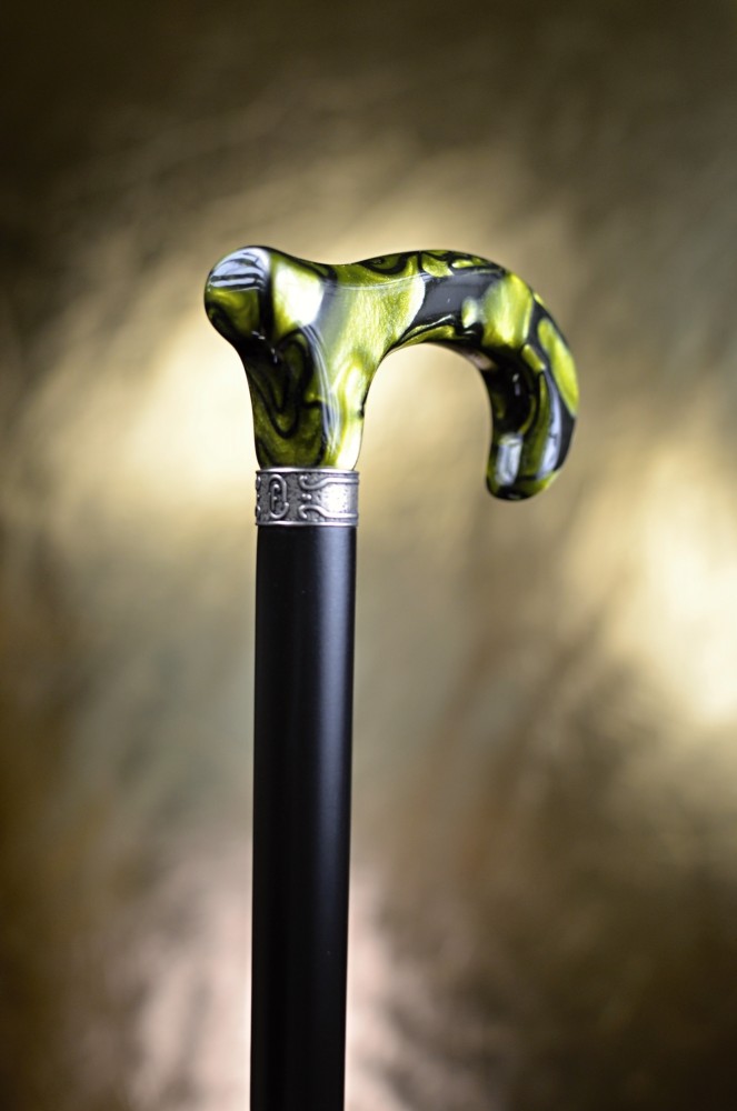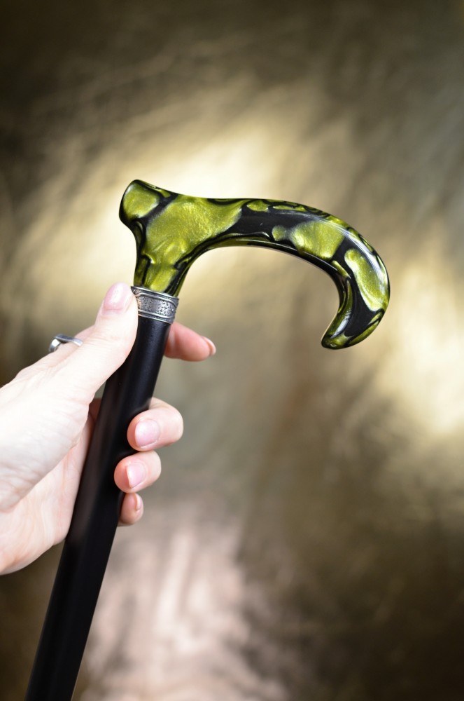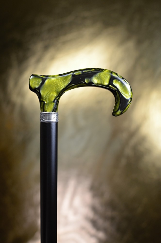 Na první pohled zaujme lesklou rukojetí v zelené žíhané barvě s mramorovým efektem, která dodává holi osobitý a noblesní vzhled.