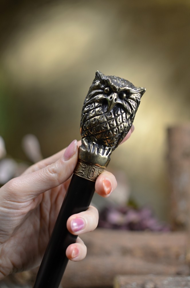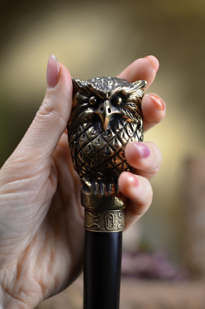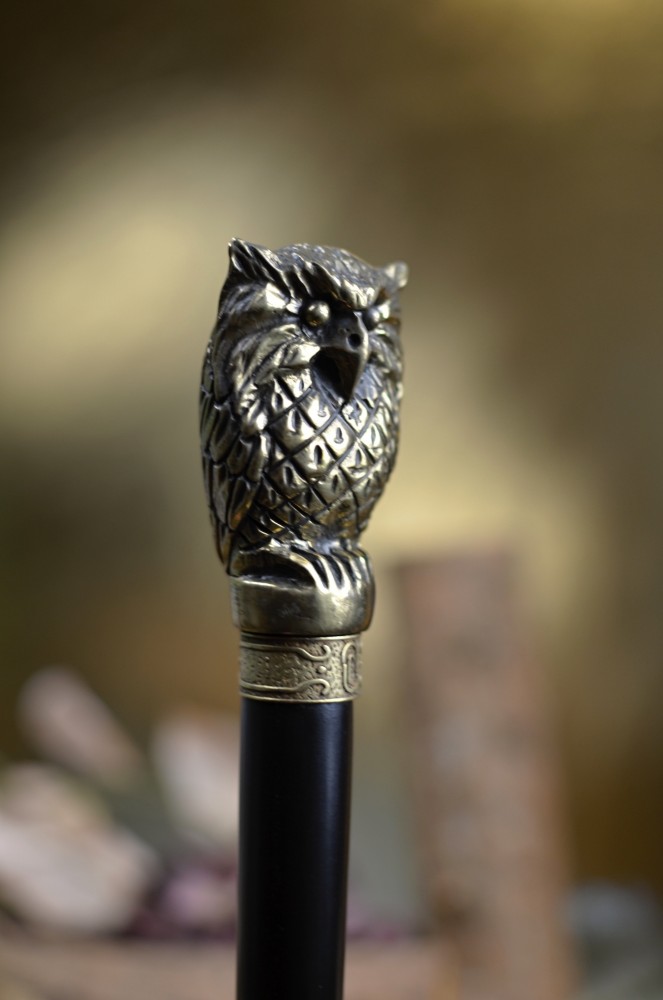 Sběratelská hůl s detailní soškou moudré sovy z pokované pryskyřice. Tělo hole je z bukového dřeva zakončeno zlatým prstencem. Sova je dostupná ve zlaté i stříbrné variantě.