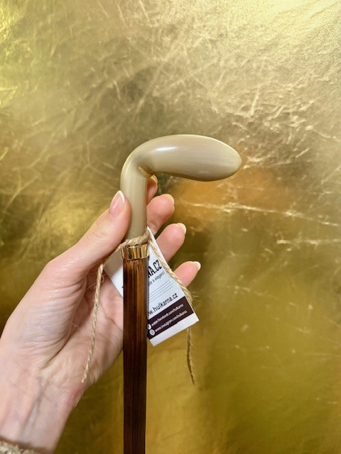 Jemná vycházková hůl s dřevěným nebo ratanovým tělem a rukojetí z broušeného rohu. Krásná stylová vycházková hůl na lehoučké opírání....