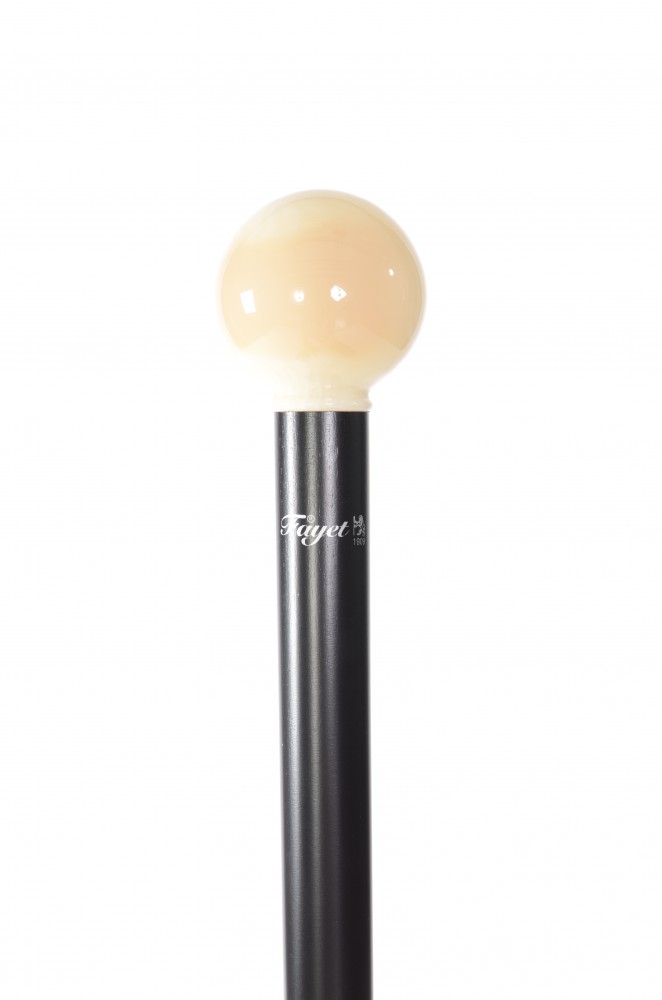 Elegantní a vycházková hůl s ozdobnou, ale ne přezdobenou koulí v barvě slonové kosti až bílé, která příjemně sedne do ruky. Rukojeť je hladká a tak akorát do dlaně. Tělo je dřevěné a v černé barvě. Tuto hůl si často kupují gentlmani k podtrhnutí svého outfitu nebo pro různé sváteční události. Tato stylová vycházková hůl vynikne k fraku, obleku, černému klobouku nebo klidně k riflím a košili.