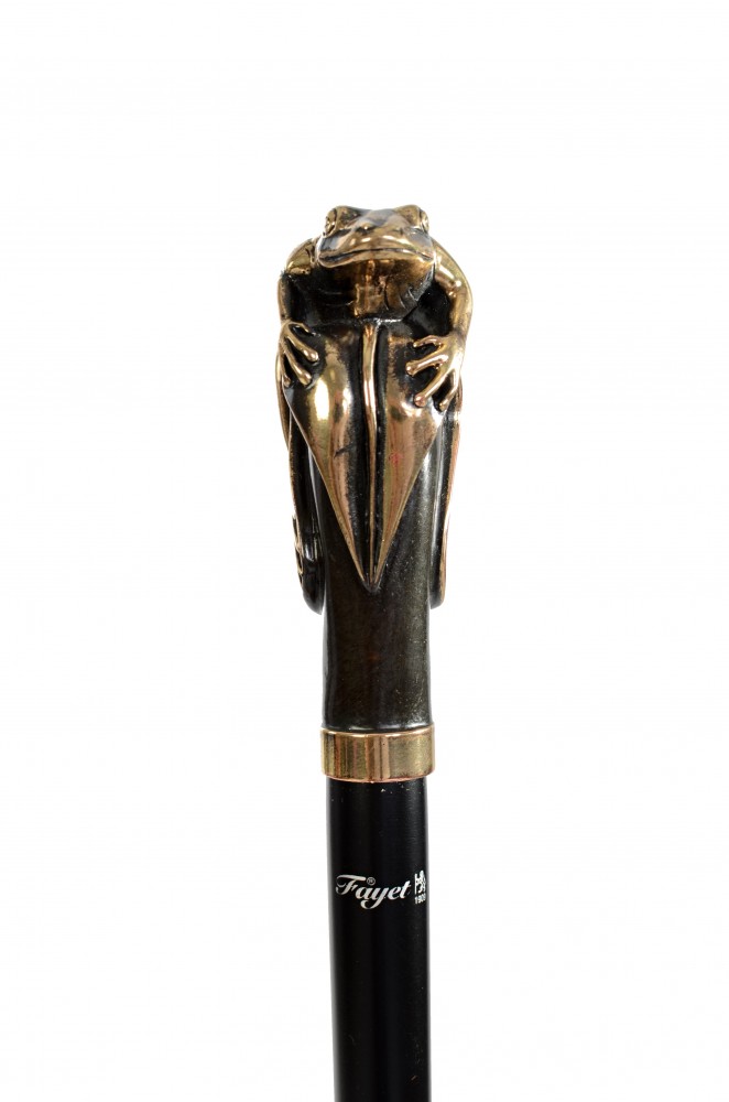 Vycházková hůl s rukojetí ve tvaru sedící žabky. Hůl je velmi lehká a pevná, má fixní délku. Hůl je vyrobena ve Španělsku. Na hůlce není logo Fayet.