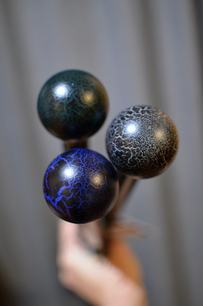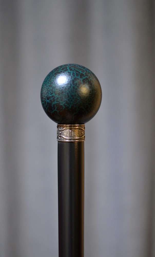 Sběratelská vycházková hůl s kulatou rukojetí, která je dekorována tzv. "cracking" stylem, tedy povrch schválně vypadá jako popraskaný pro docílení nevšedního efektu.
