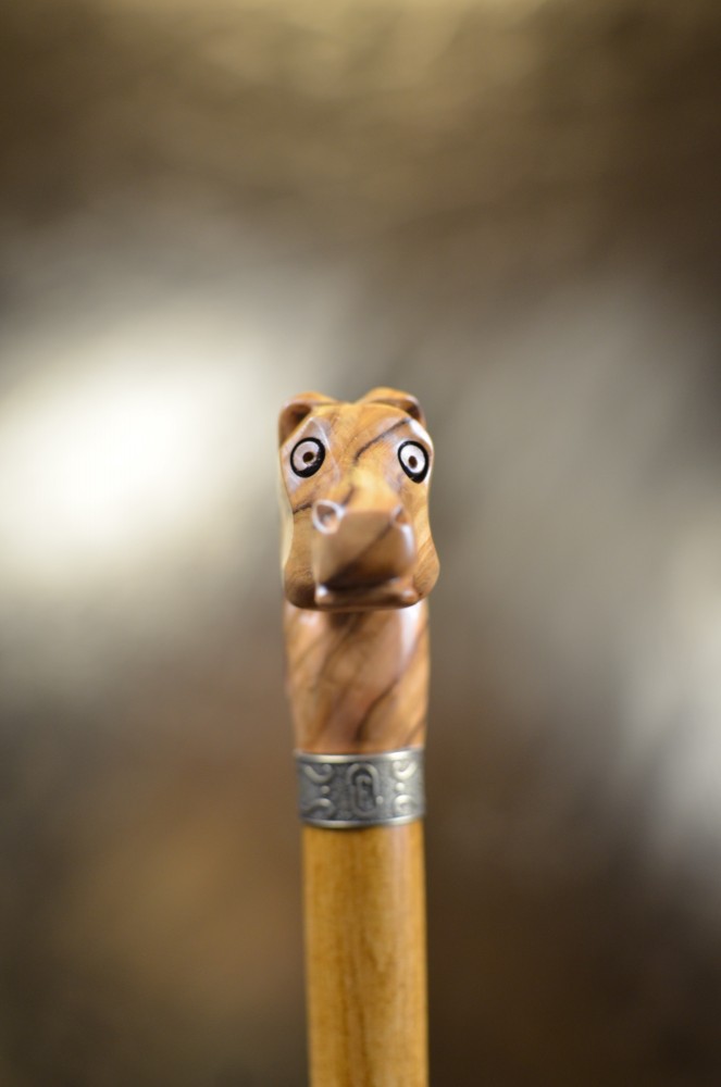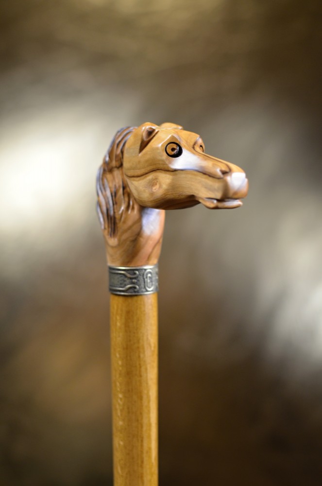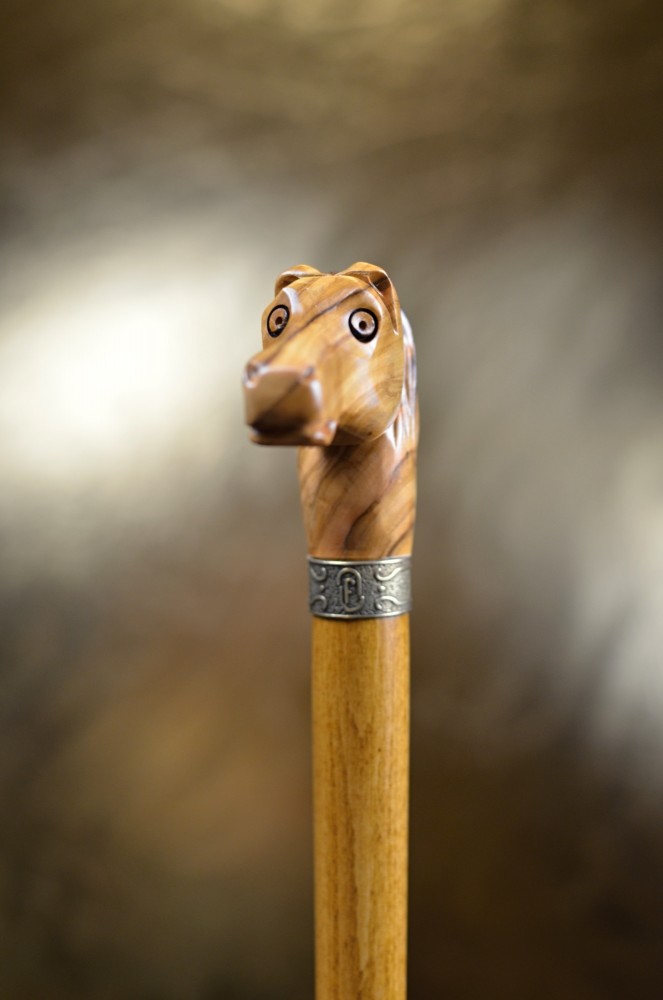 Jemná vycházková hůl s dřevěným tělem a rukojetí ve tvaru hlavy koně z olivového dřeva. Hůl je zakončena zúženou koncovkou, která podtrhuje její elegantní a štíhlý vzhled. Ručně vyřezávaná hlava dodává každému kusu osobitý charakter a činí z hole výjimečný designový doplněk.