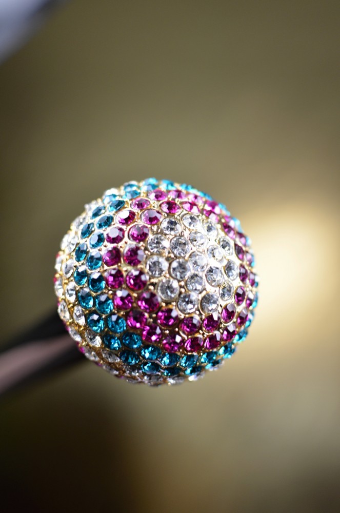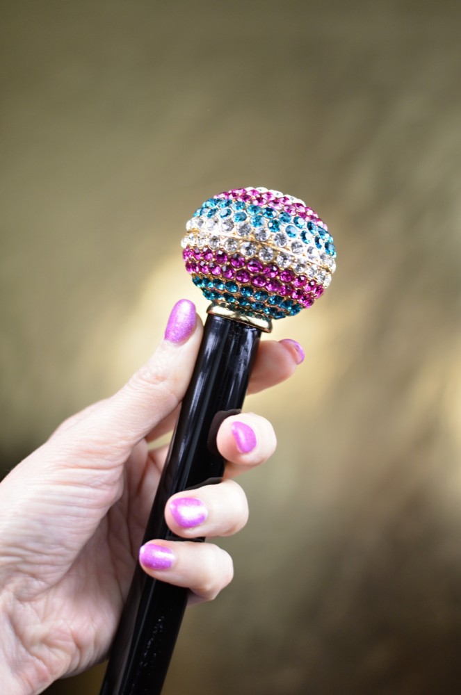 Spirálová hůlka magie, osázená kamínky ve třech barvách růžová/bílá/modrá