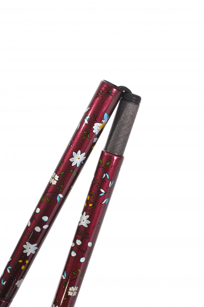 Vycházková hůl skládací z kompozitního materiálu s květinovými vzory a rukojetí Derby. Hůl je vyrobena ve Francii v manufaktuře, kde se vyrábí hole, které se objevily např. v seriálu Dr. House, jiné používají třeba J.P. Belmondo nebo A. Delon.