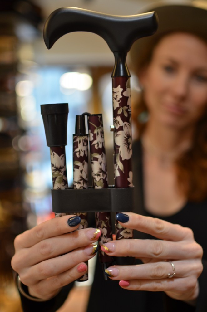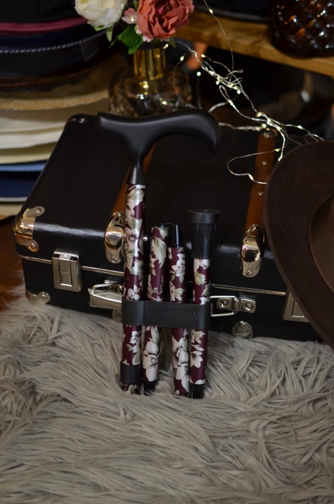 Hůlkárna Skládací hole Vycházková hůl skládací Flora Bordó (78-88 cm)