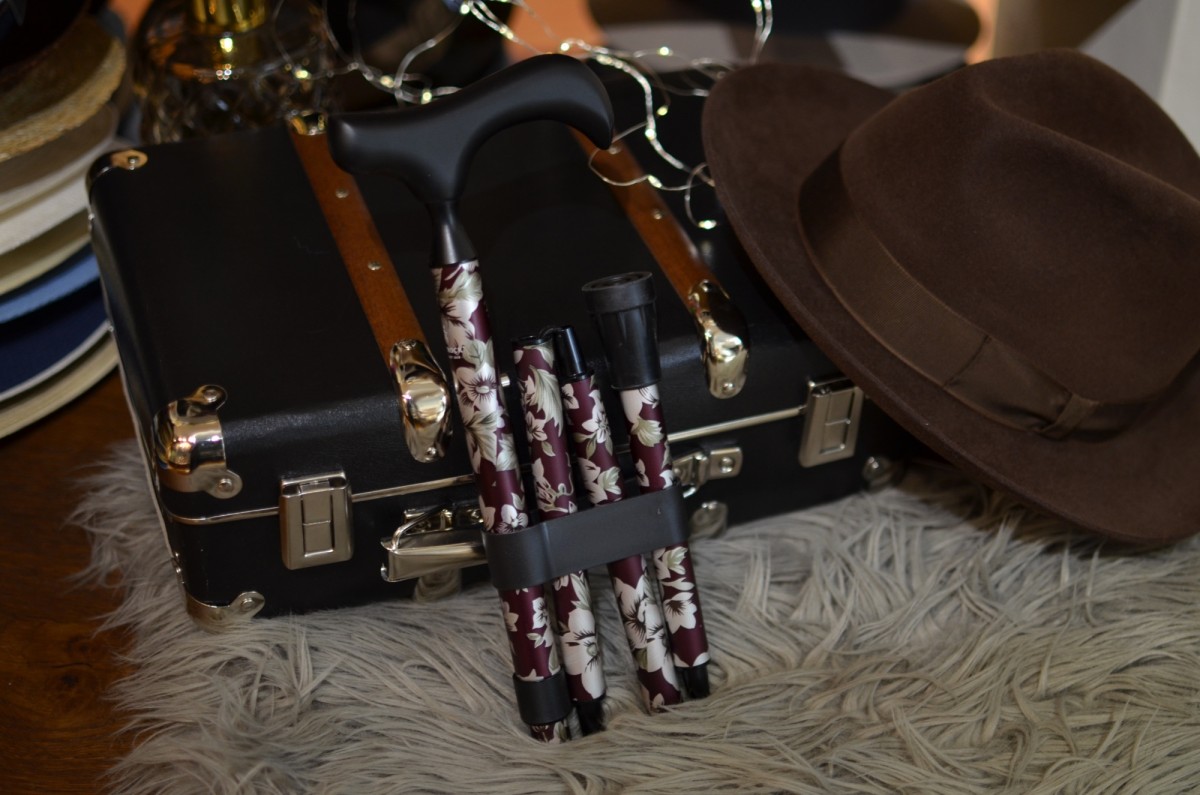 Krásná skládací vycházková hůl ve vínové barvě s bílými květy lilií. Moderní design a praktičnost, to jsou charakteristiky této hůlky od německého výrobce Gastrock založeného již v roce 1868, prezentujícího se svým mottem Go in style.
