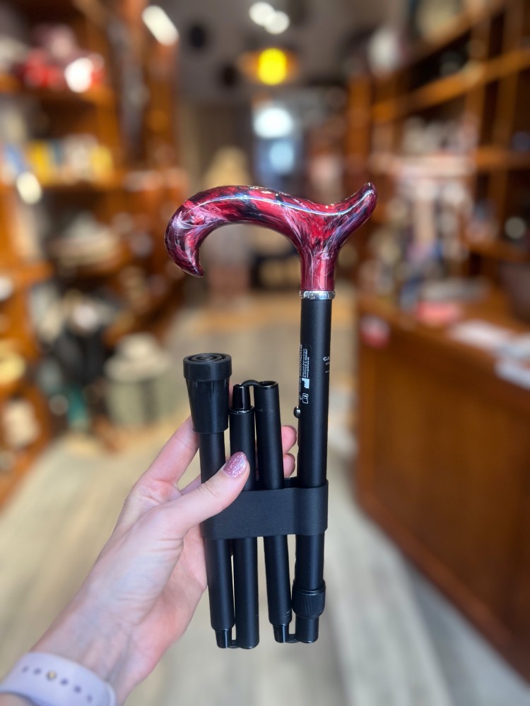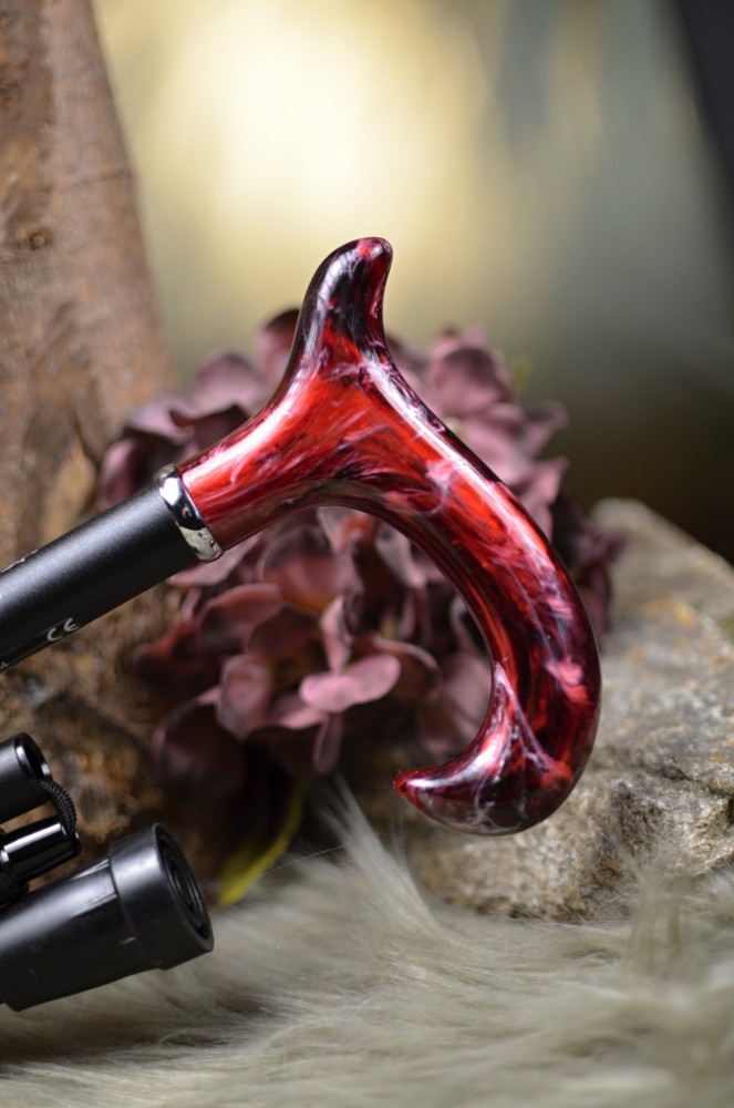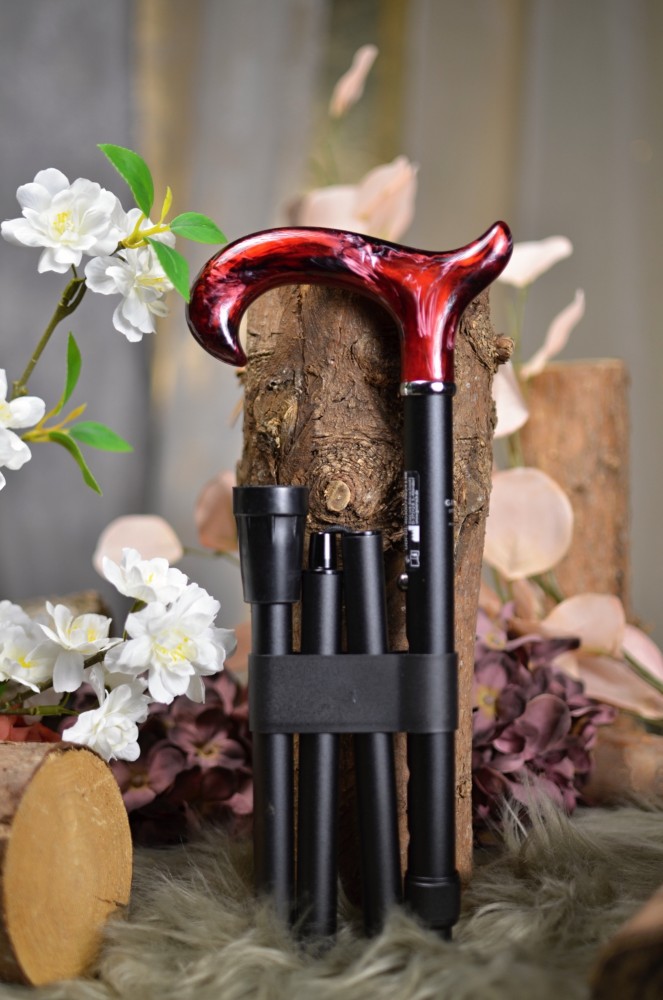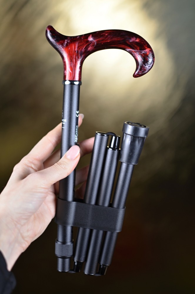 Luxusní skládací vycházková hůl s rukojetí jako imitace mramoru. Součástí balení je i skvostná prošívaná textilní taška.