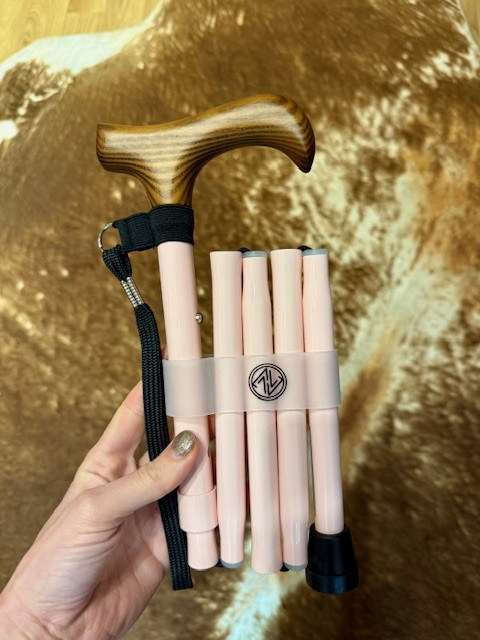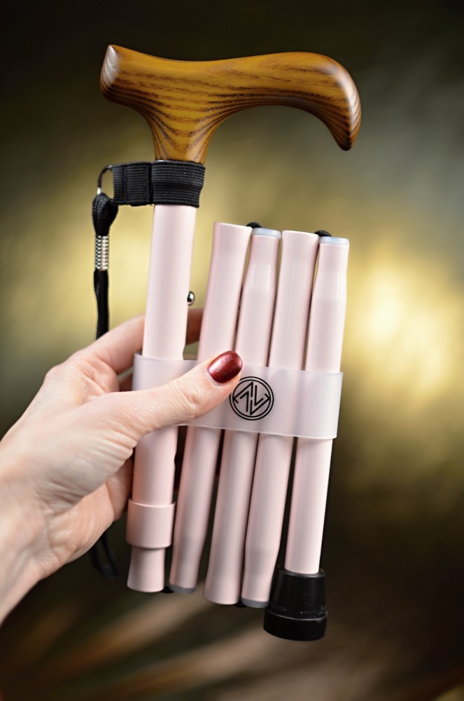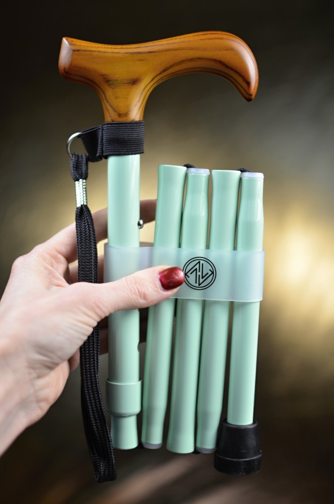 Nastavitelná mini vycházková hůl v pastelově barvě, kterou lze snadno složit pro pohodlné skladování, je ideálním doplňkem pro mobilitu pro vše od jízdy autobusem po výlety do supermarketů a dokonce i na výlety do zahraničí. Pohodlně lehká, kompaktní a nastavitelná vycházková hůl je moderní doplněk mobility s klasickou rukojetí Derby. Ideální pro každého, kdo chce robustní podporu, která se snadno sbalí, když je omezený prostor.