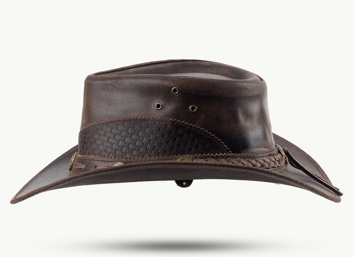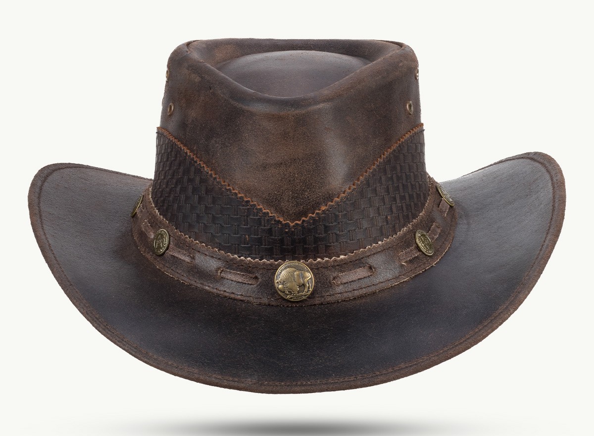 Klobouk Lyndon je poctivým zástupcem westernového stylu, ve kterém se přirozeně potkává funkčnost, řemeslná kvalita a osobitý vzhled. Je vyroben z pevné hnědé hovězí kůže s autentickým vintage efektem, díky němuž působí nadčasově a zároveň charakterově výrazně.